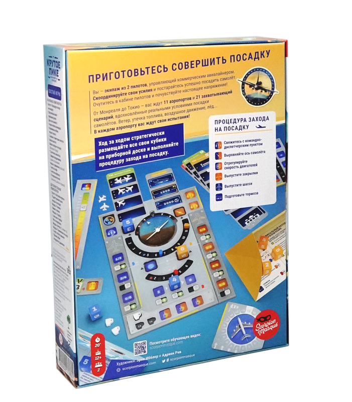Ход за ходом стратегически размещайте все свои кубики на приборной доске и выполняйте процедуру захода на посадку. Связывайтесь с авиадиспетчерами, чтобы убедиться в отсутствии других самолётов на вашем пути; регулируйте скорость, чтобы не пролететь мимо аэропорта; выравнивайте самолёт, чтобы приземлиться без крена; используйте закрылки, чтобы увеличить аэродинамическое сопротивление крыльев; выпускайте шасси, чтобы посадка была безопасной; и, наконец, задействуйте тормоза, чтобы замедлить движение самолёта на земле.