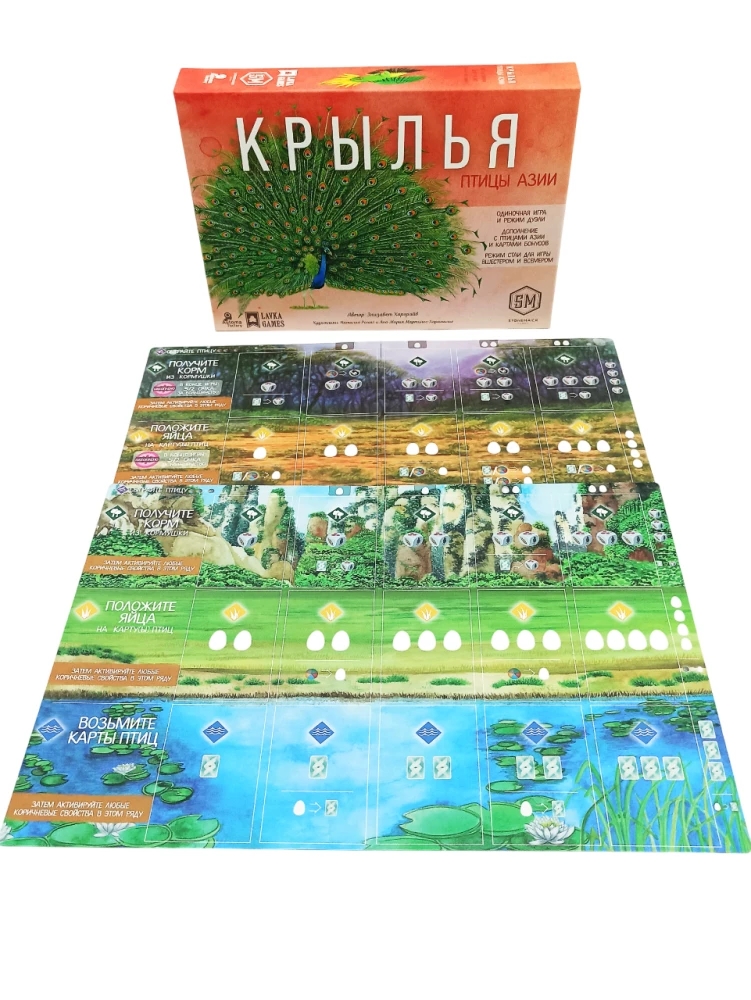 Крылья: Птицы Азии не только познакомит нас с новыми птицами (в дополнении 90 новых карт) и добавит 11 дополнительных бонусных карт, которые как обычно можно объединять с базовой игрой и предыдущими дополнениями. В правилах вы также найдете подробную инструкцию по новым режимам игры: