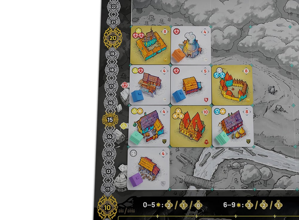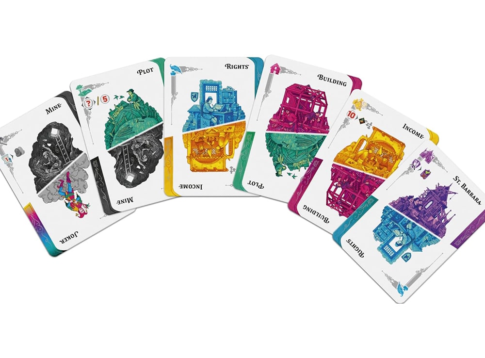 В каждом раунде игроки будут по очереди выбирать действия из руки двухсторонних карточек, развивая стратегические планы - добычу руды, приобретение земельных участков и разрешений на строительство, возведение зданий для своих гильдий, получение дохода от производства и, конечно, участие в постройки Собора Святой Варвары.
