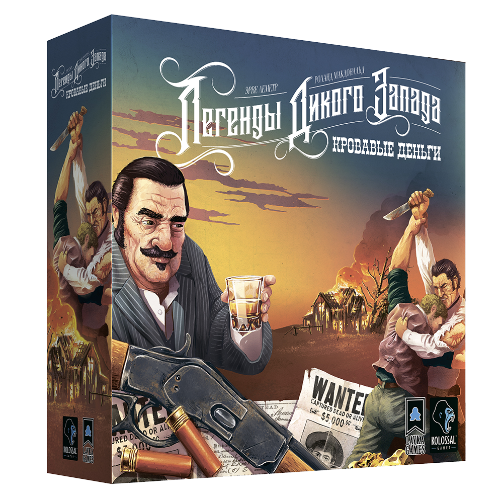 «Легенды Дикого Запада. Кровавые деньги» – это второе большое дополнение для «Легенды Дикого Запада», в котором появилось несколько модулей, позволяющих адаптировать каждую вашу партию. Модуль «Риска» использует кубик, который улучшает ряд действий... с риском получить физическую травму. Модуль «Легендарная история» включает в себя трек сюжета и приключения с высокой наградой для игроков. Теперь игроки могут приобретать у странствующего торговца задания в локациях и легендарные предметы. И, конечно же, в игре появилось множество новых персонажей и предметов!