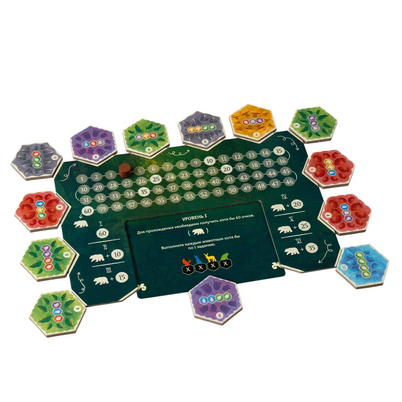 - или возьмите 1 тайл задания и поставьте на него фигурку своего животного