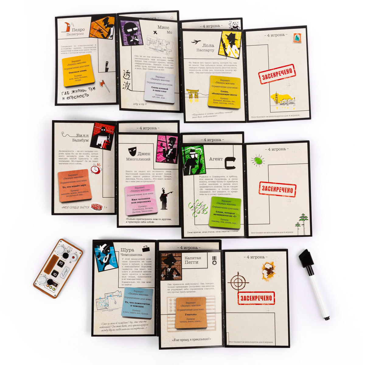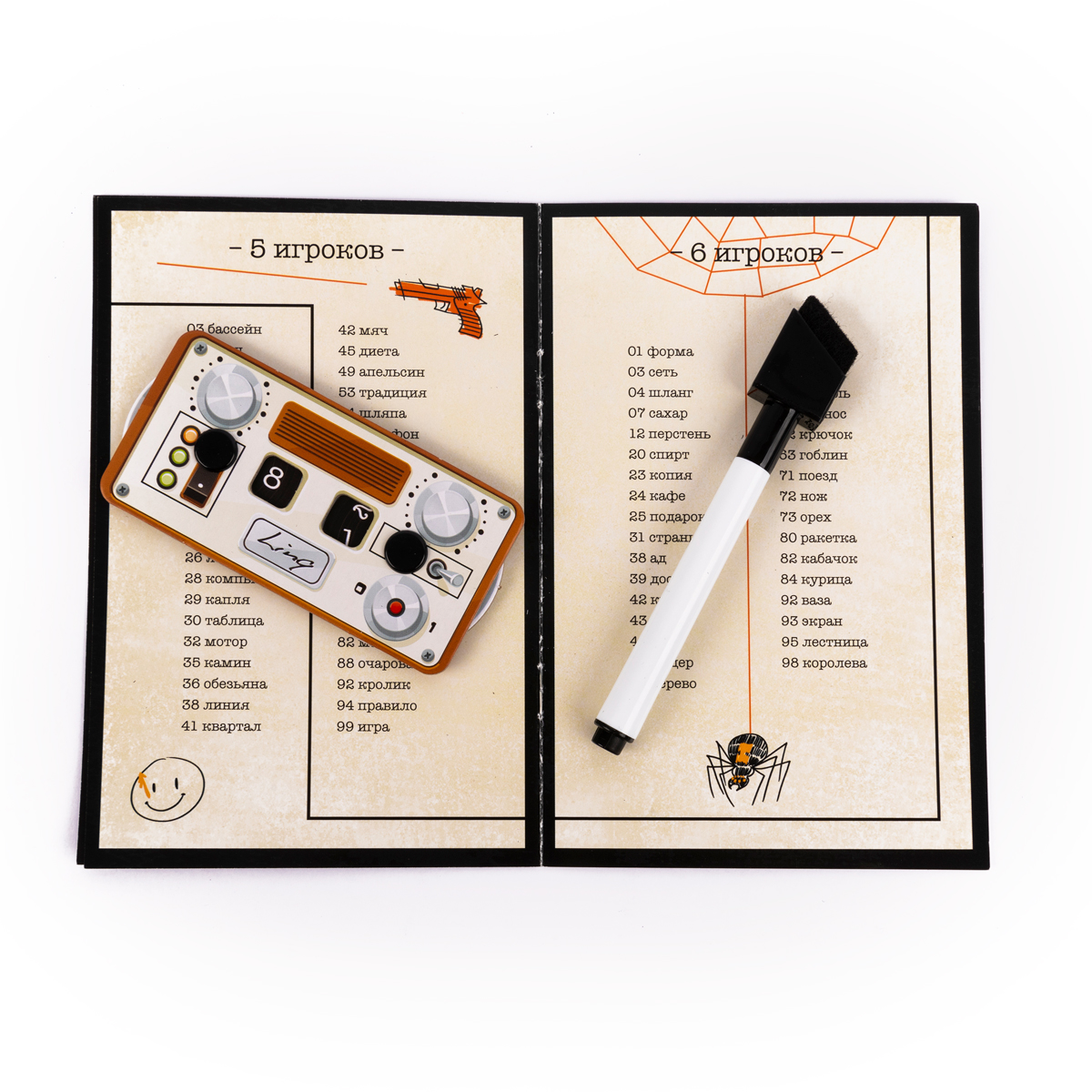 Игроки ищут это число в своих блокнотах. Если в блокноте игрока есть такое число и рядом с ним слово, то он шпион, а слов - это пароль, точно такой же, как и у второго шпиона. Если же числа в блокноте нет, значит, игрок - честный гражданин, чья цель помешать их встрече.