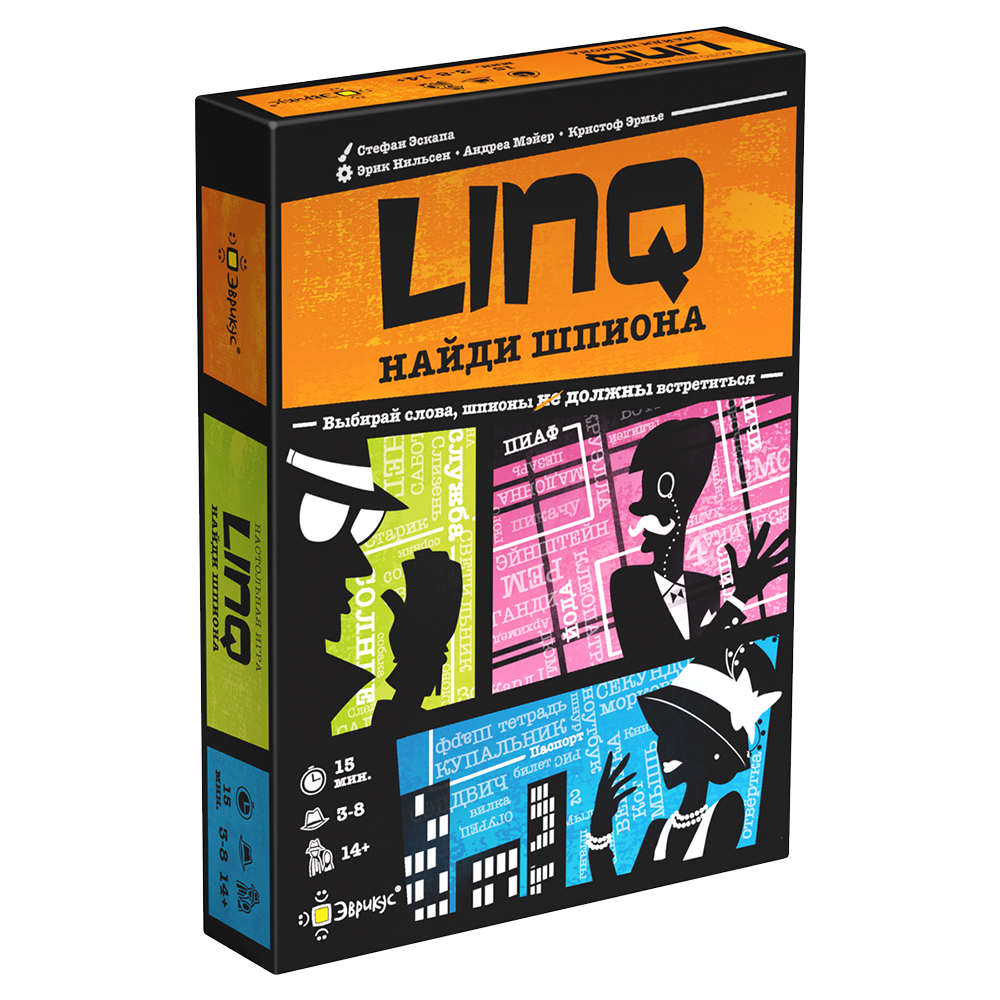 «Linq. Найди шпиона» — это захватывающая игра на дедукцию и интуицию для компании до 8 человек, где игроки погружаются в мир шпионских интриг. Ваша задача — либо найти своего напарника-шпиона, либо вычислить вражеских агентов, используя лишь 2 слова и логику.