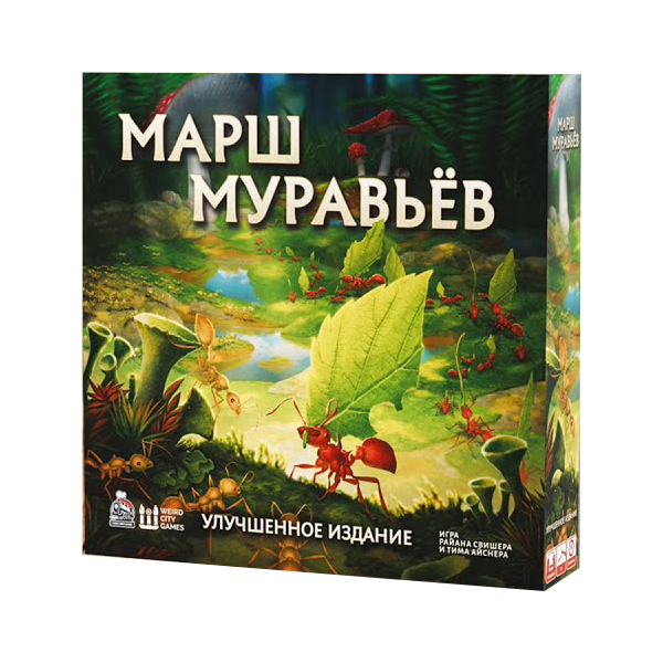 «Марш муравьёв. Улучшенное издание» — это комплексная глубокая 4x-стратегия для 1–5 игроков о муравьиных цивилизациях. Всего за 90 минут вы прочувствуете все стороны суровой реальности этого крохотного мира. Управляйте гнездом, исследуйте луга в поисках еды, охраняйте свои территории, сражайтесь с соседними колониями за земли или объединяйтесь против общего врага — многоножек. И главное — эволюционируйте, чтобы выжить!