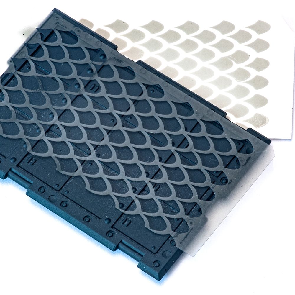 Маска изготовлена из гибкой просвечивающей пленки ПВХ ORACAL ORAMASK 810 толщиной 80 микрон и предназначена для создания рисунков, узоров и орнаментов при окраске аэрографом или методом тампонирования. Полупрозрачность пленки обеспечивает различимость основы, что обеспечивает простое и точное нанесение краски.