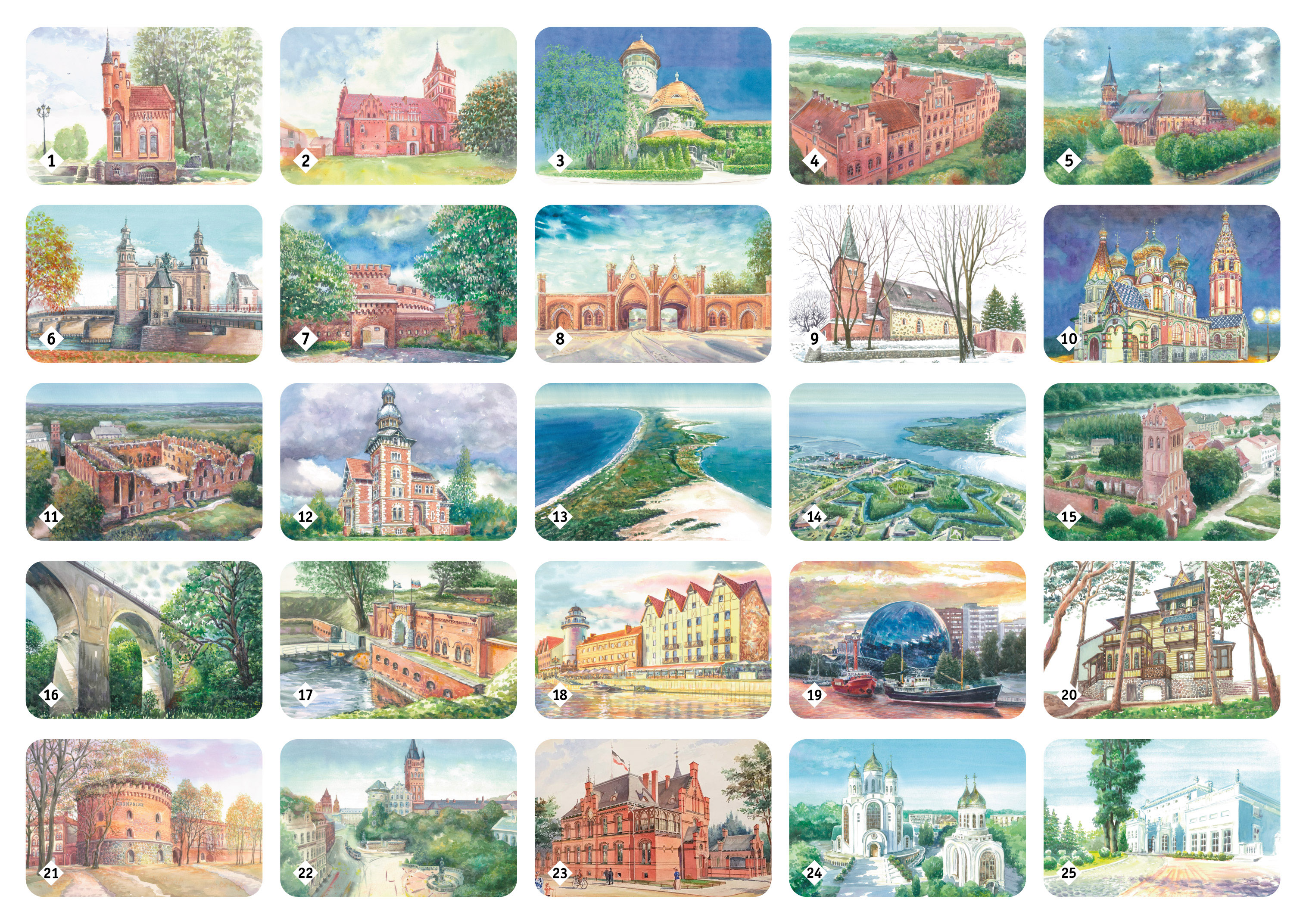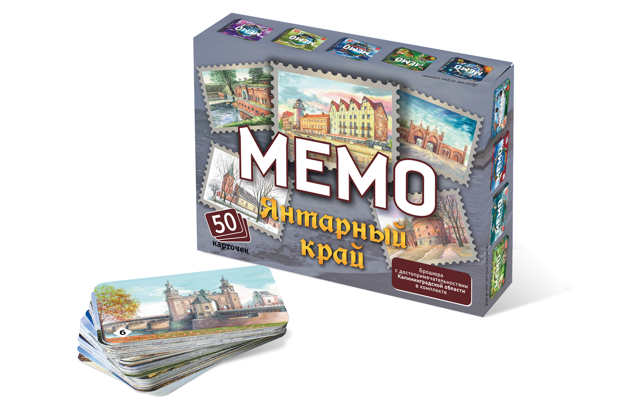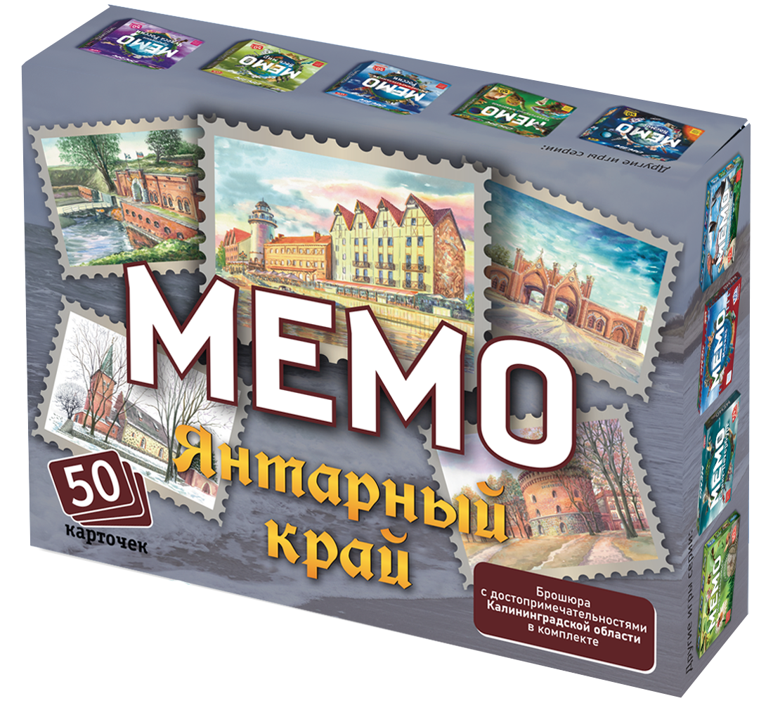 Мемо Янтарный край - игра для тренировки зрительной памяти. В состав игры входит 50 парных карточек, то есть всего 25 пар карточек, с тематическими изображениями.