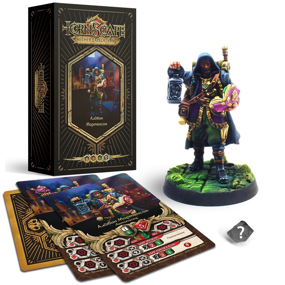 Миниатюра «Алдвин Мортенсон» для настольной игры Tornscape. Данный набор состоит из деталей для сборки Миниатюры с двумя опциями сборки, 32мм фигурной Подставки, двух Карточек Миниатюры и случайной Карты Бога.