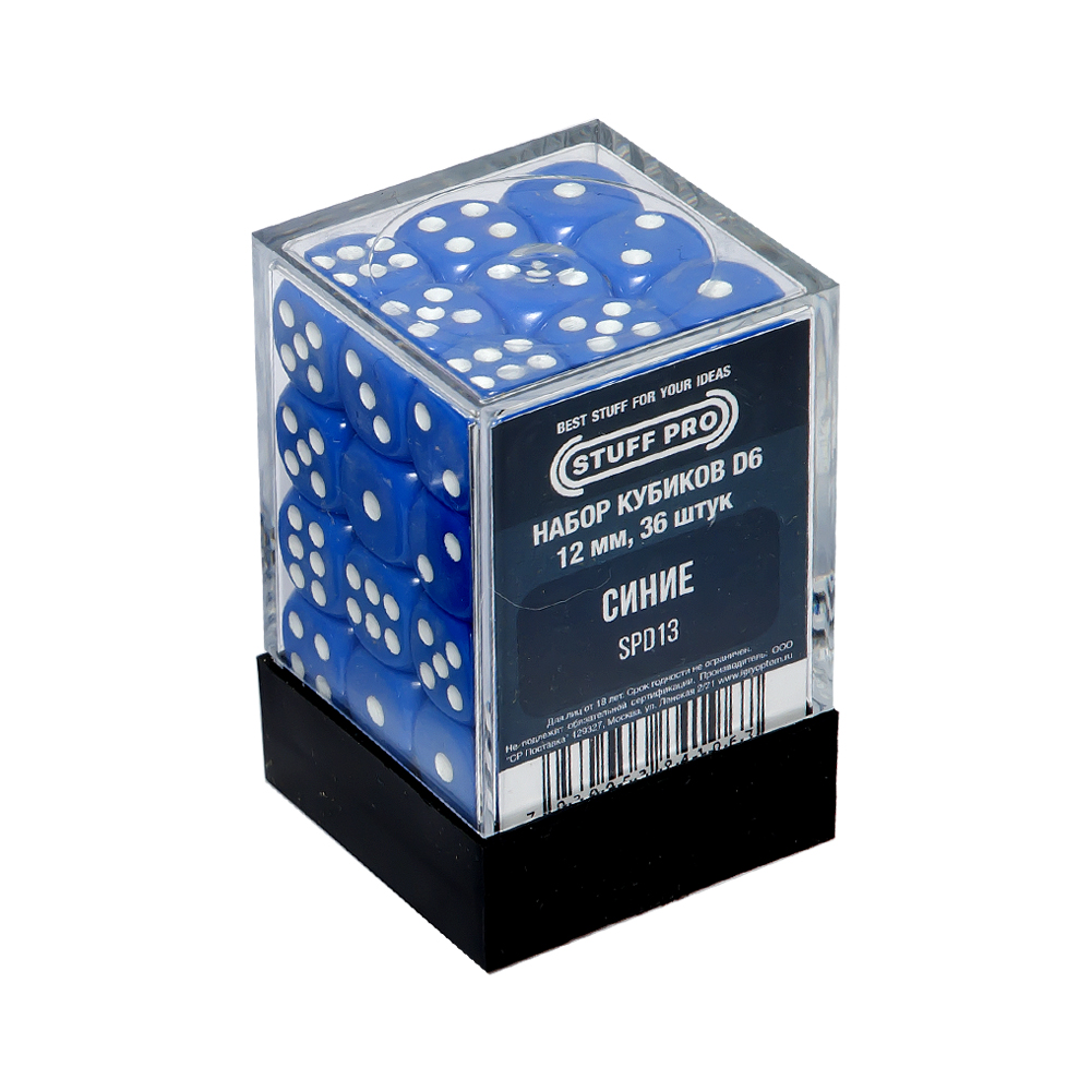 Набор кубиков Stuff Pro D6. Синие (12 мм, 36 шт) (SPD13)