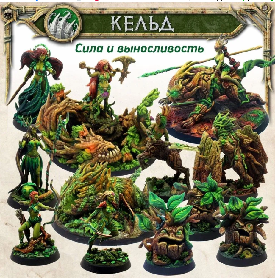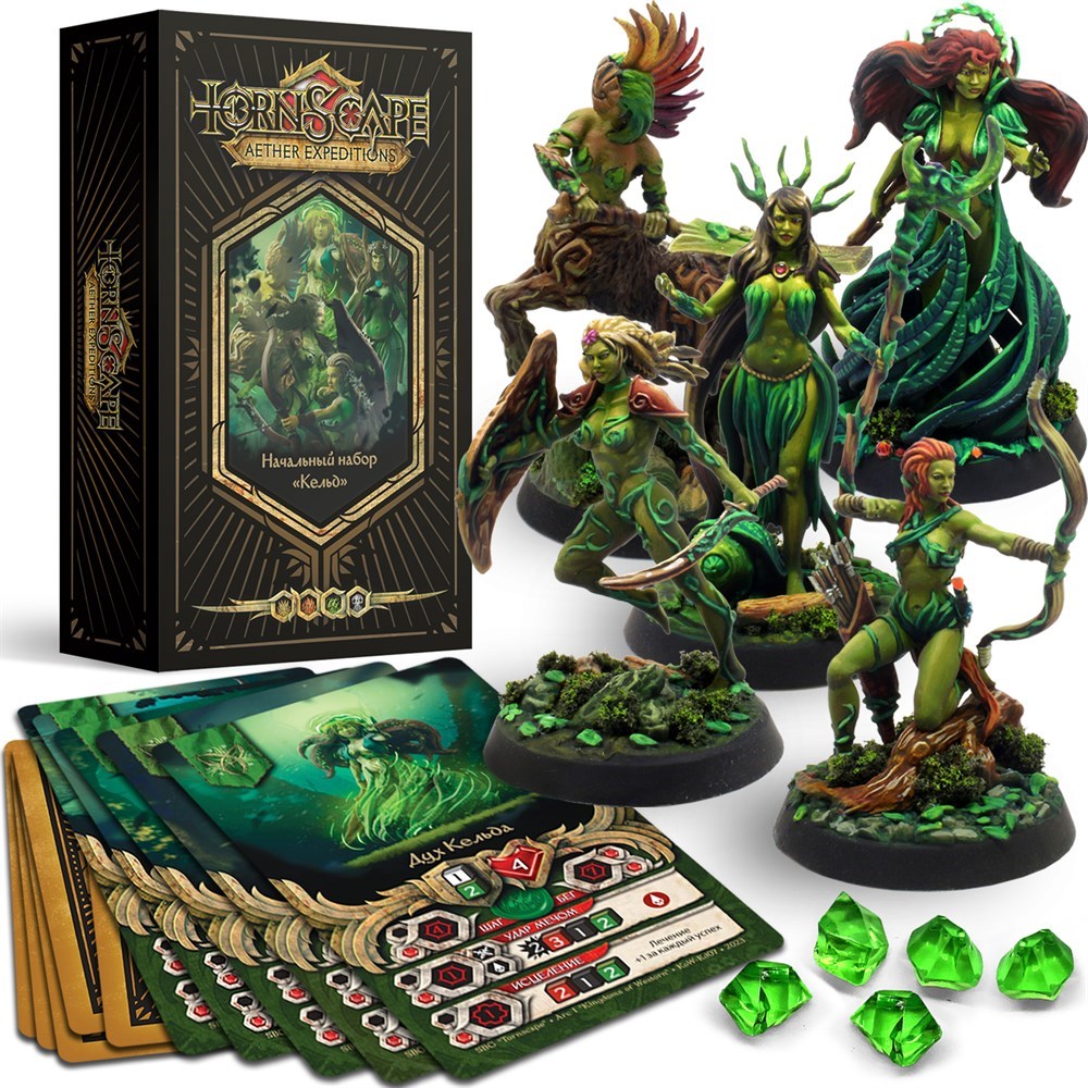 Миниатюры из начального набора «Кельд» для настольной игры Tornscape. Данный набор состоит из деталей для сборки миниатюр, 32мм Подставок, Карточек Миниатюр и случайных Карт Богов (Жизнь).