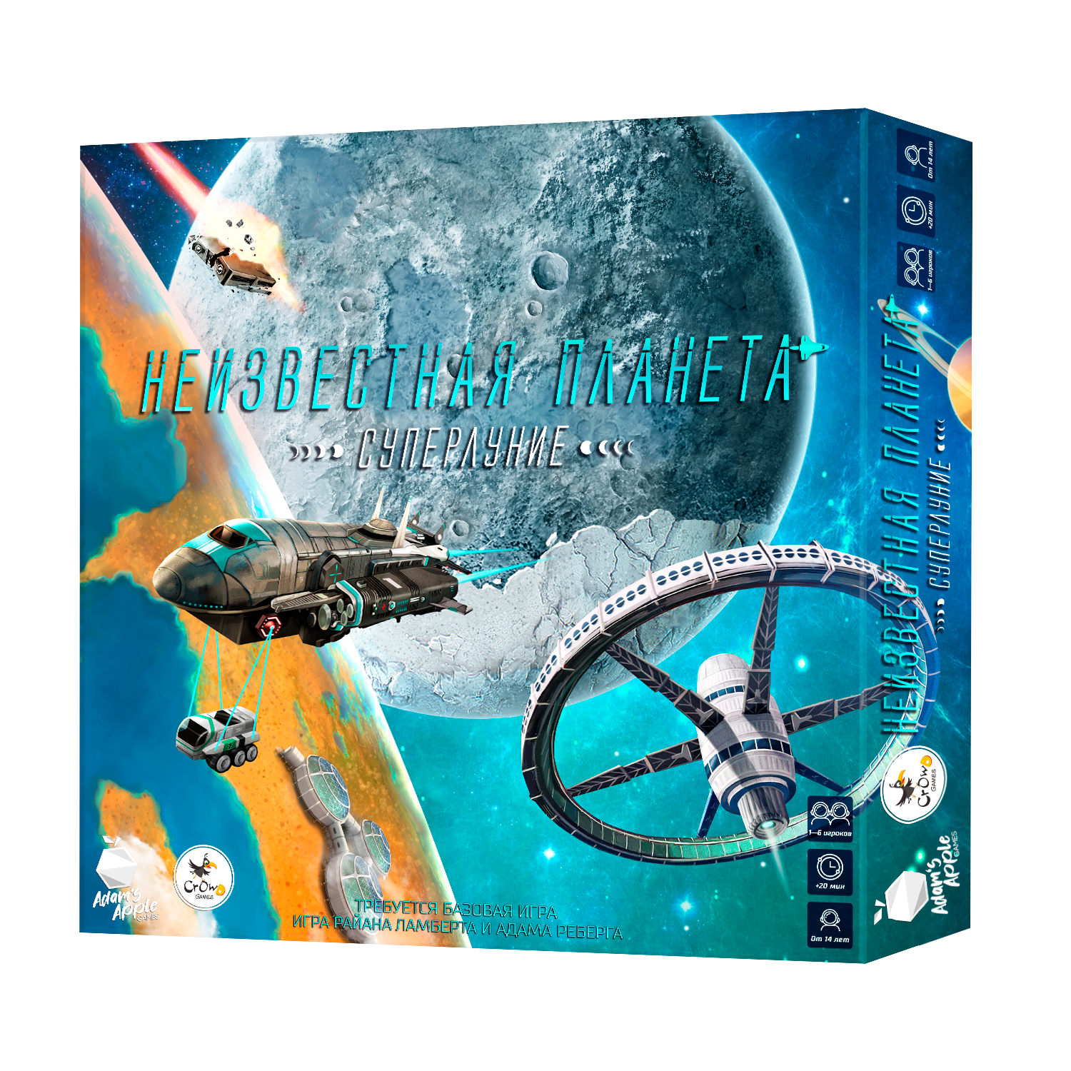 «Суперлуние» — первое дополнение к «Неизвестной планете». Оно состоит из 3 модулей, которые можно как угодно сочетать как в обычном, так и в одиночном режиме. Добавьте «Суперлуние», «Аварийные жетоны» и «Массивы», чтобы сделать игру ещё интереснее!