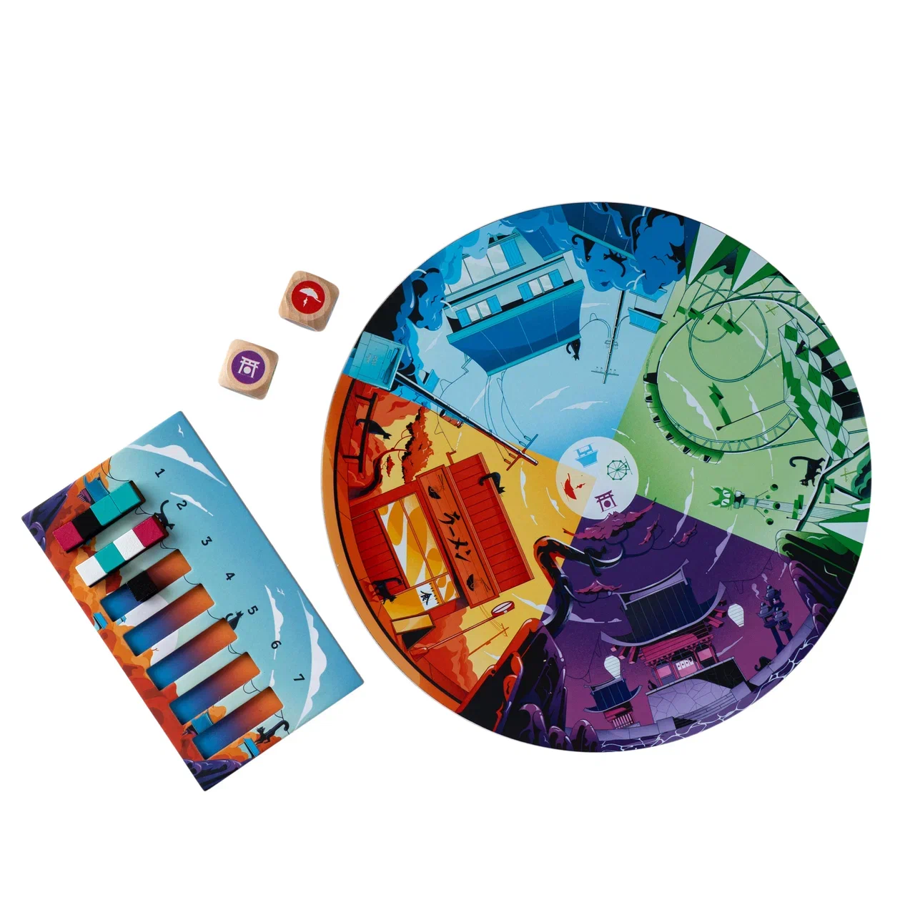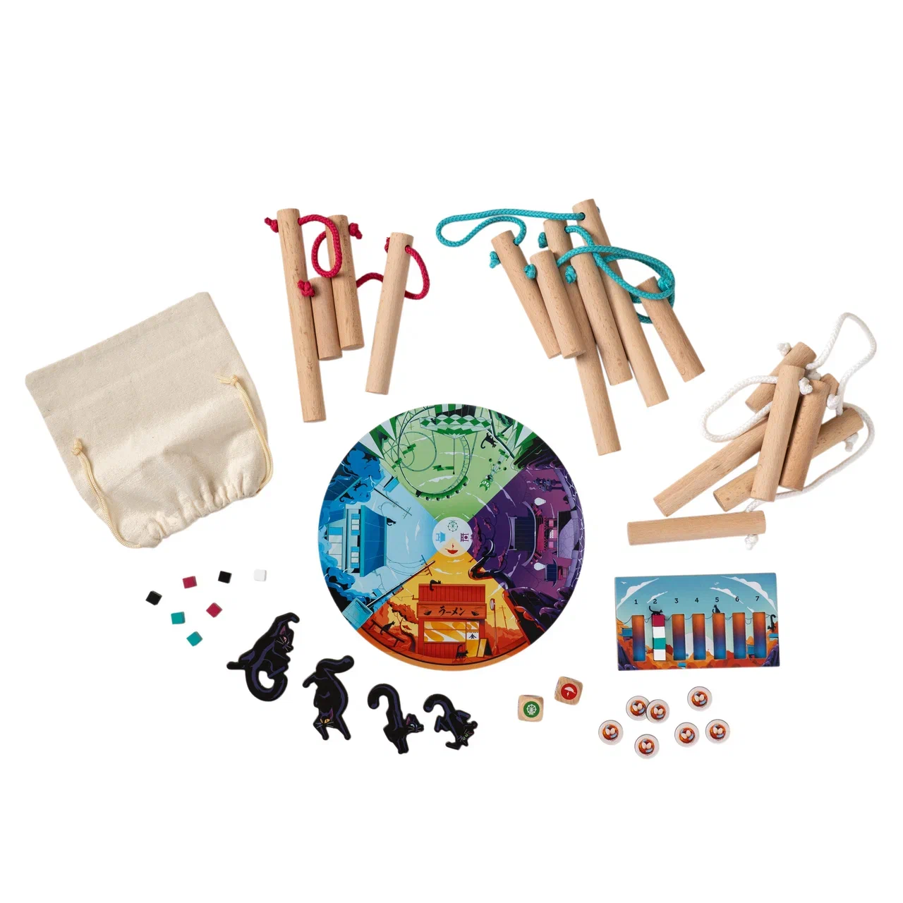Нэкодзима — крошечный японский остров, на котором кошек больше, чем двуногих жителей, и совсем нет электричества. Вам предстоит соединять линиями электропередач четыре микрорайона, избегая падений и короткого замыкания. Бросайте кубики, хватайте нужные столбики-дэнтю и вперёд — к всеобщей электрификации!