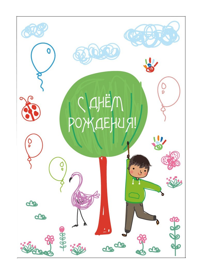 Пакет бумажный "С Днем рождения. Детские рисунки-Дерево".
