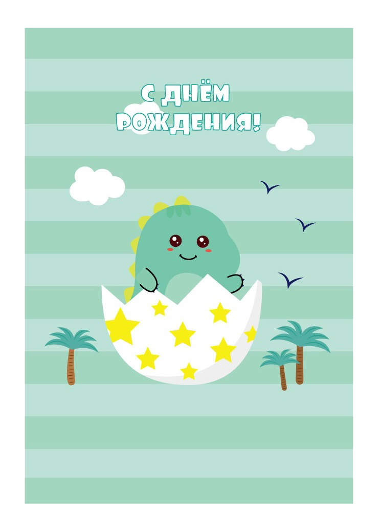 Пакет бумажный "С Днем рождения. Динозаврик в скорлупе".