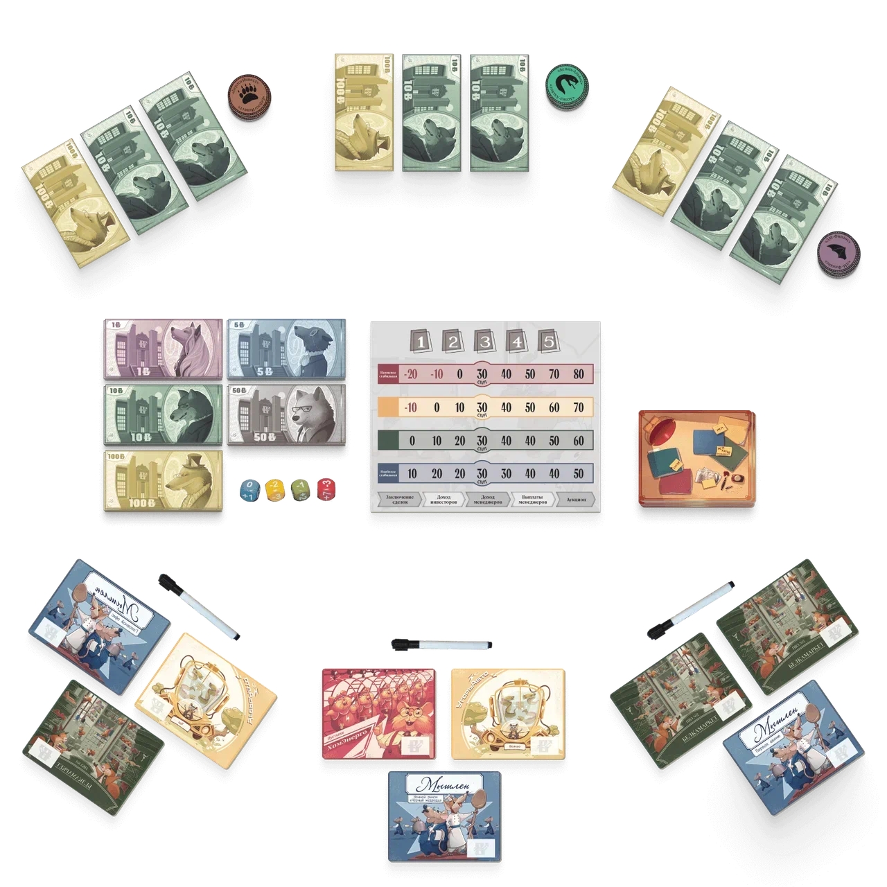 - 60 жетонов инвесторов;
