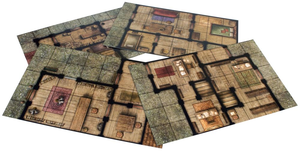 На 18 цветных фрагментах размером 5 на 8 клеток вы найдёте такие любопытные места, как шикарная столовая, кабинет учёного, тайное логово, изящно обставленная квартира, заброшенный чердак и жилище бедняка, где героев ждёт встреча с сообщниками или с опасными врагами. Отдельные фрагменты можно комбинировать между собой, создавая новые жилые или рабочие помещения.