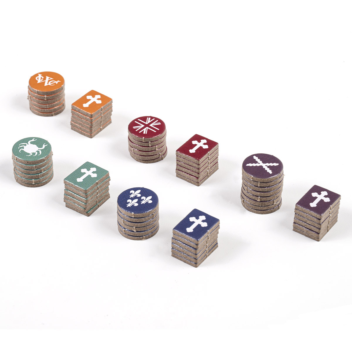 - 32 жетона колоний (по 6 на игрока + 2 фиолетовые)