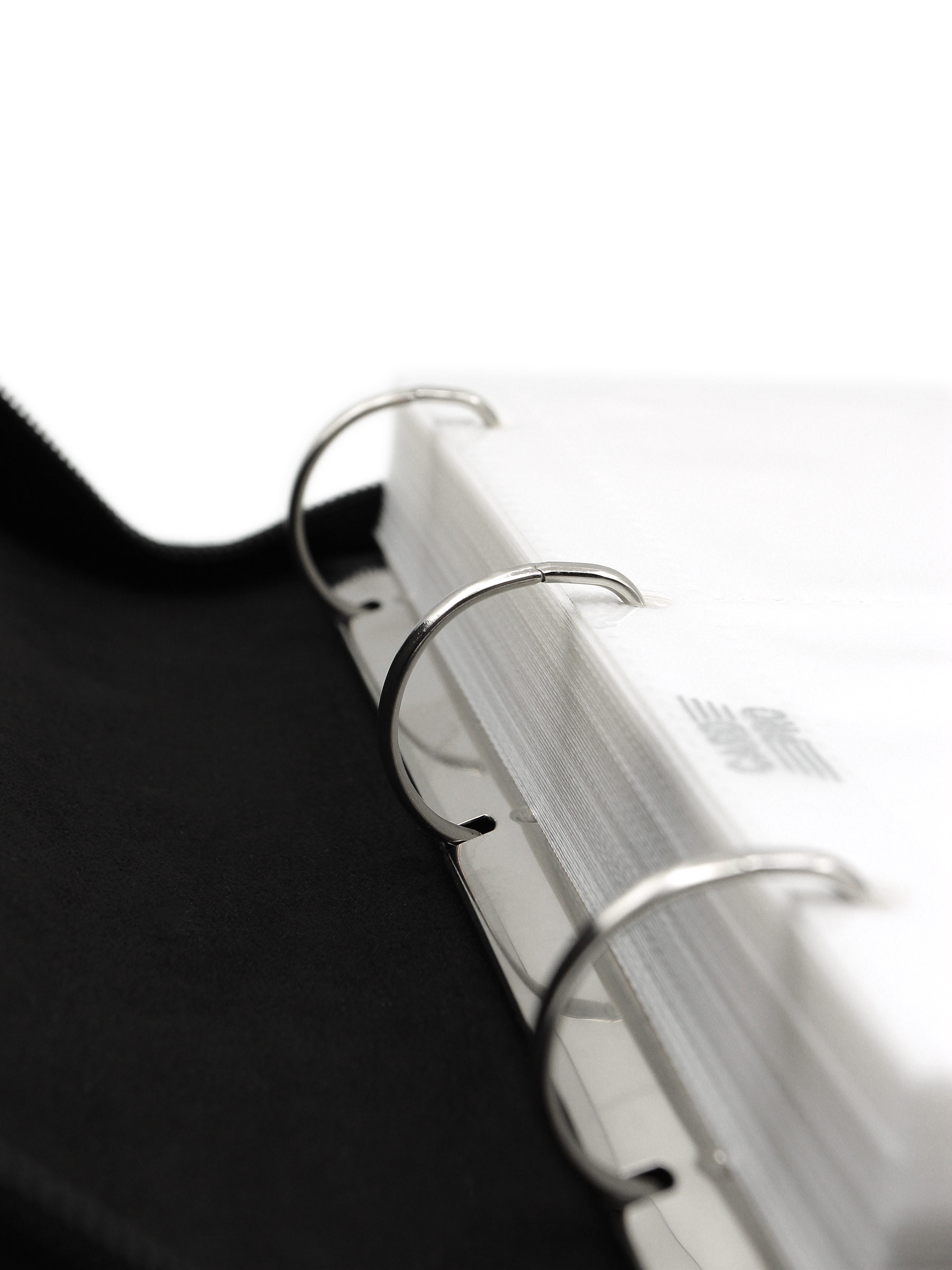 Премиум материал искусственная кожа. Крепление из колец надежно удерживает листы и позволяет добавить новые. Застегивается на молнию.