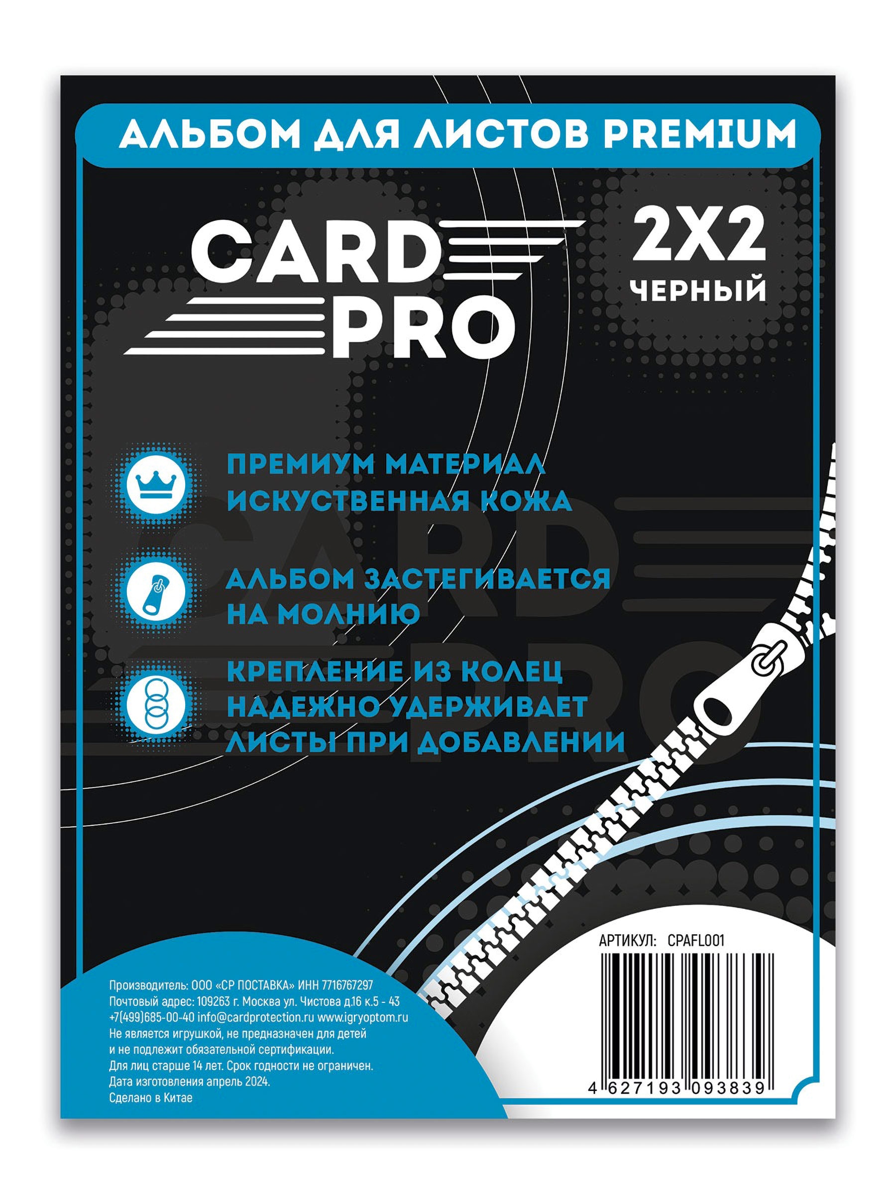 Премиум альбом Card-Pro Premium с кольцами для листов 2х2 - Черный (на молнии)