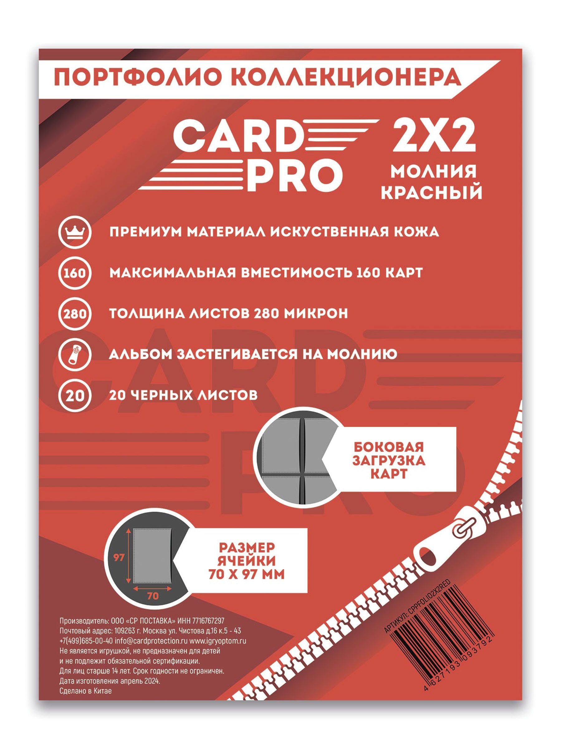 Премиум альбом Card-Pro с 20 встроенными листами 2х2 - Красный (на молнии)