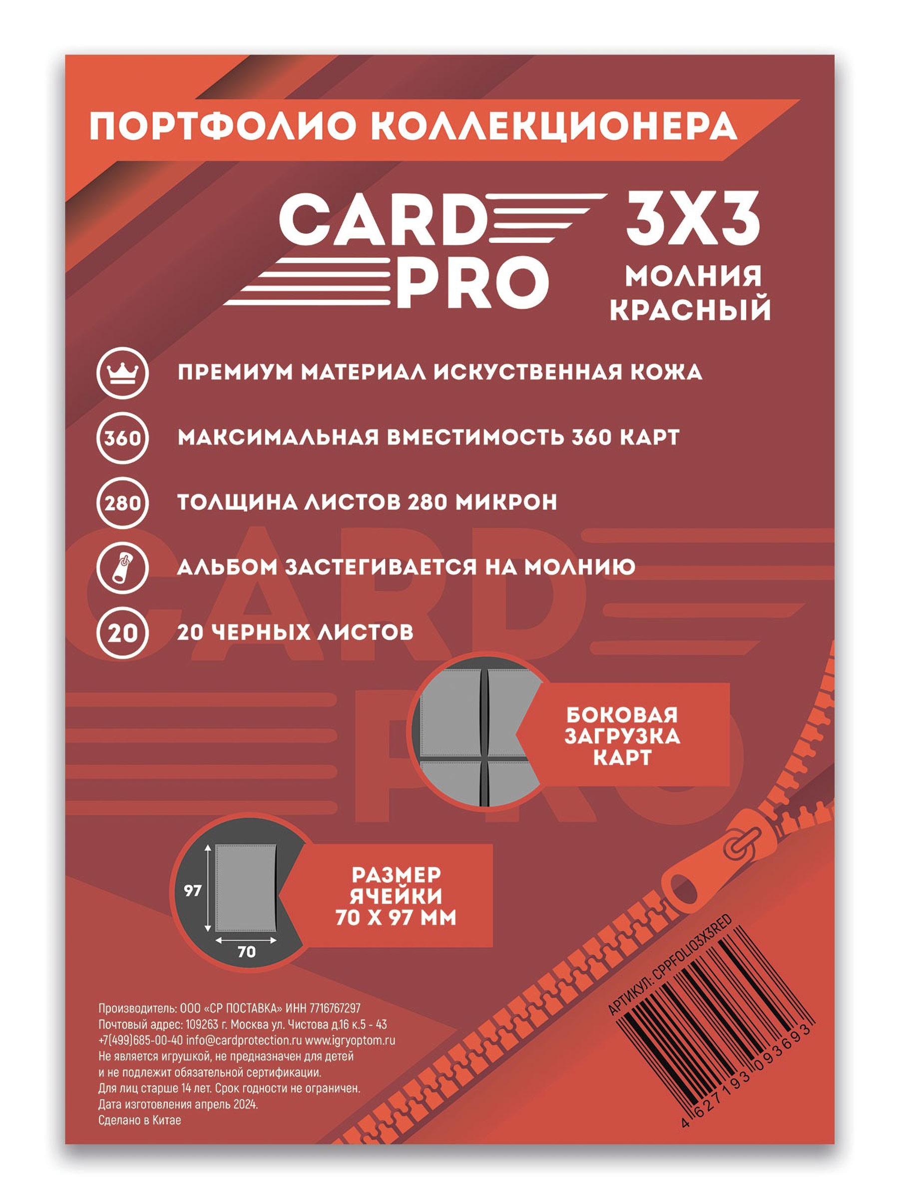 Премиум альбом Card-Pro с 20 встроенными листами 3х3 - Красный (на молнии)