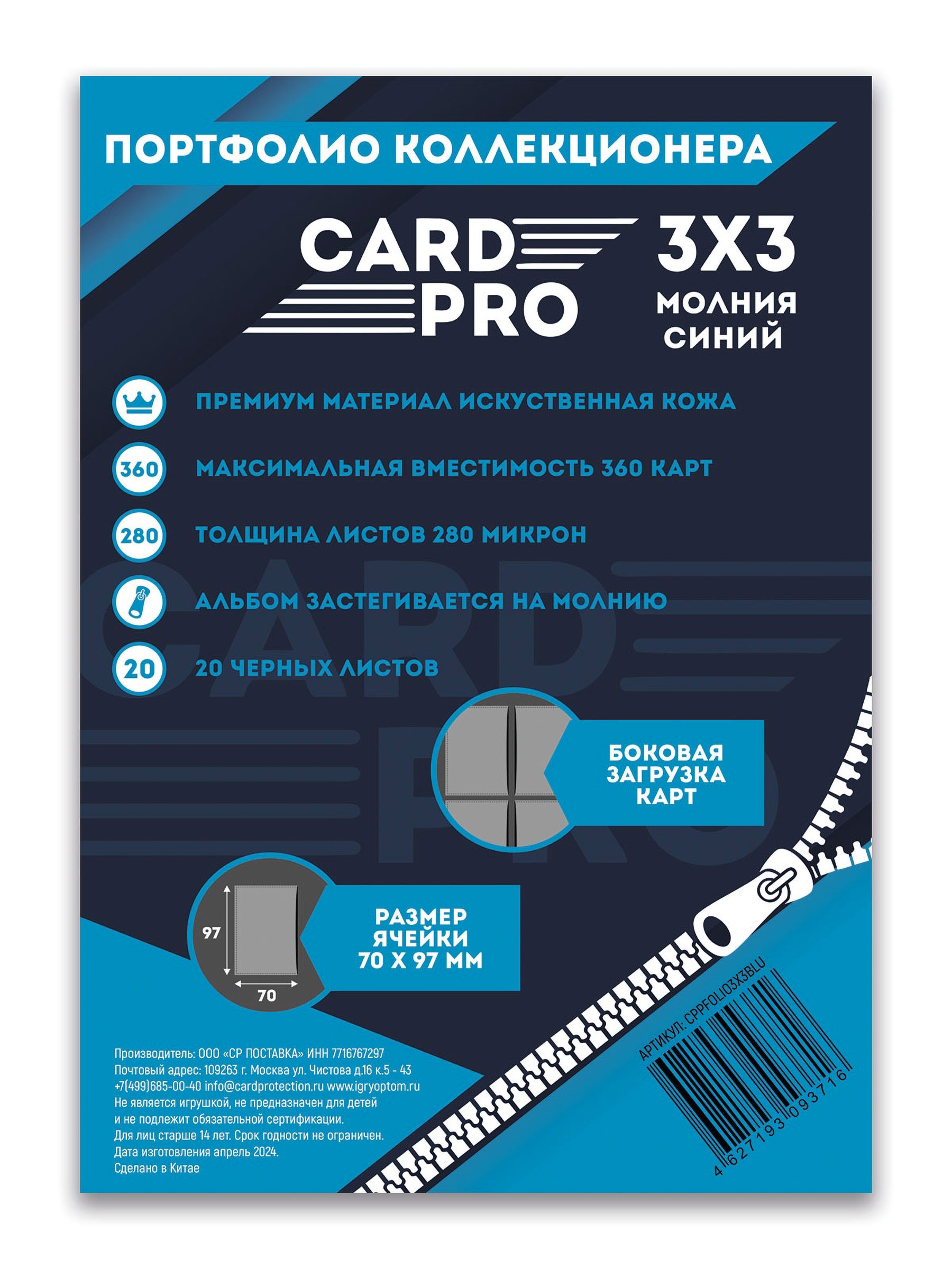 Премиум альбом Card-Pro с 20 встроенными листами 3х3 - Синий (на молнии)