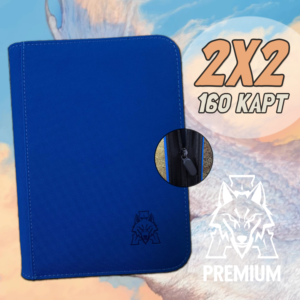 Альбом 2х2 для коллекционирования с 20 встроенными черными листами боковой загрузки. Обложка альбома тканевая, плотная. Альбом закрывается на молнию, благодаря чему карты точно не потеряются.