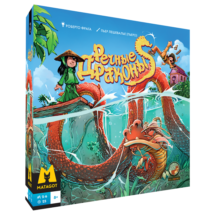 Речные Драконы — новое издание настольной классики (игра «Dragon Delta» 2000 г выпуска) для 2-6 игроков с временем партии 20-30 минут, в которой вы стремитесь переместить своего персонажа через систему досок, похожих на мосты, на другую сторону игрового поля. Легкая задача! Или, по крайней мере, так было бы, если бы все работали вместе, но, увы, это не так. Вместо этого вы все работаете самостоятельно, рядом друг с другом, и каждый будет убежден, что его путь лучше.