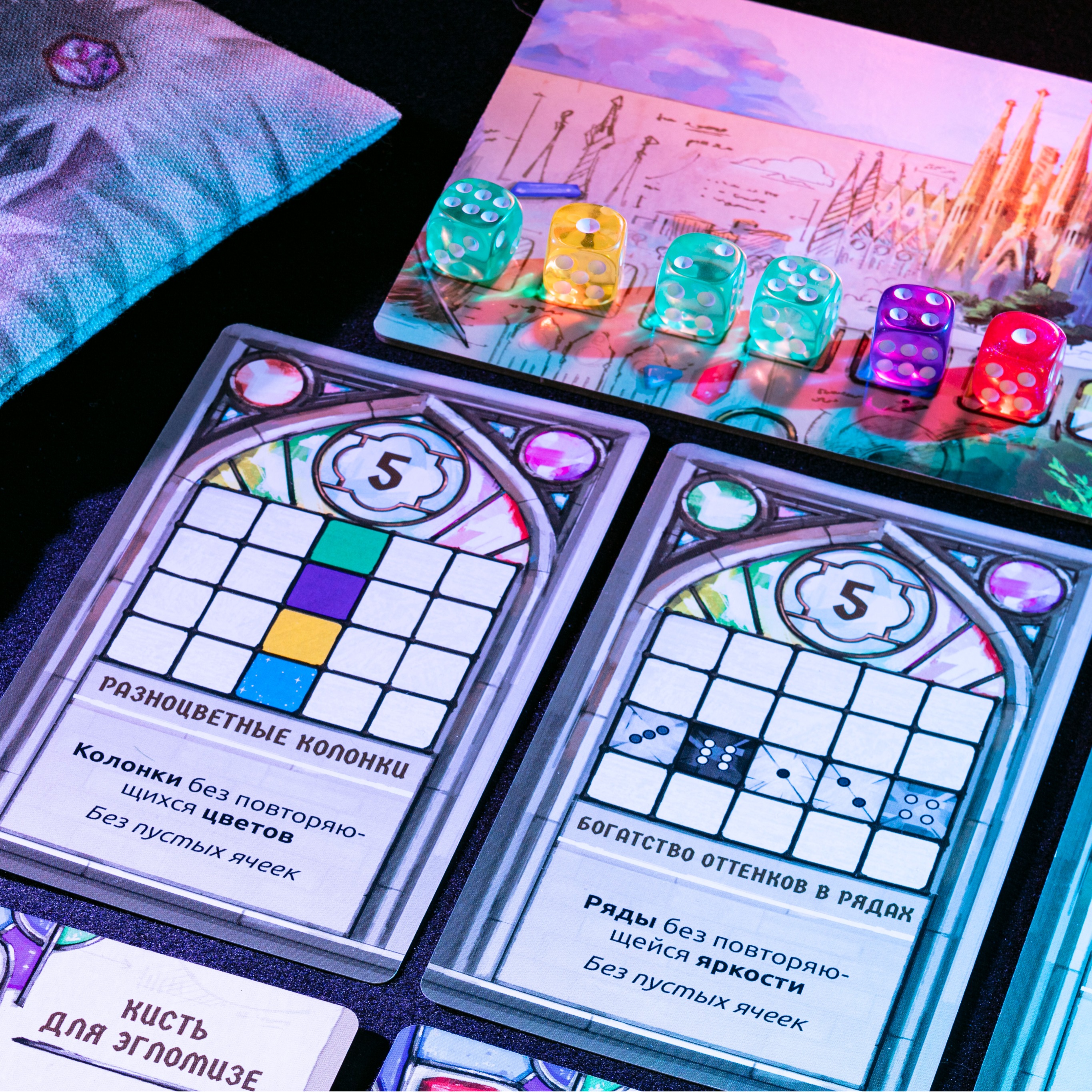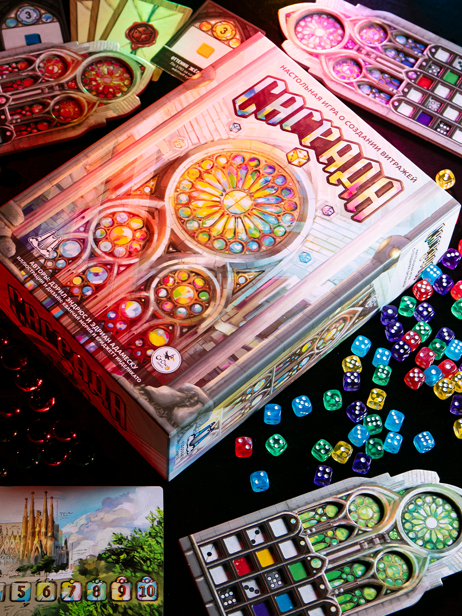 Новое издание знаменитой игры «Саграда»! Дизайн стал современнее, карты — больше, фигурные планшеты с вырезами — удобнее, а прозрачные фишки — цветными. Творите красочные витражи в обновлённом, уже ставшем мировой классикой, абстракте!