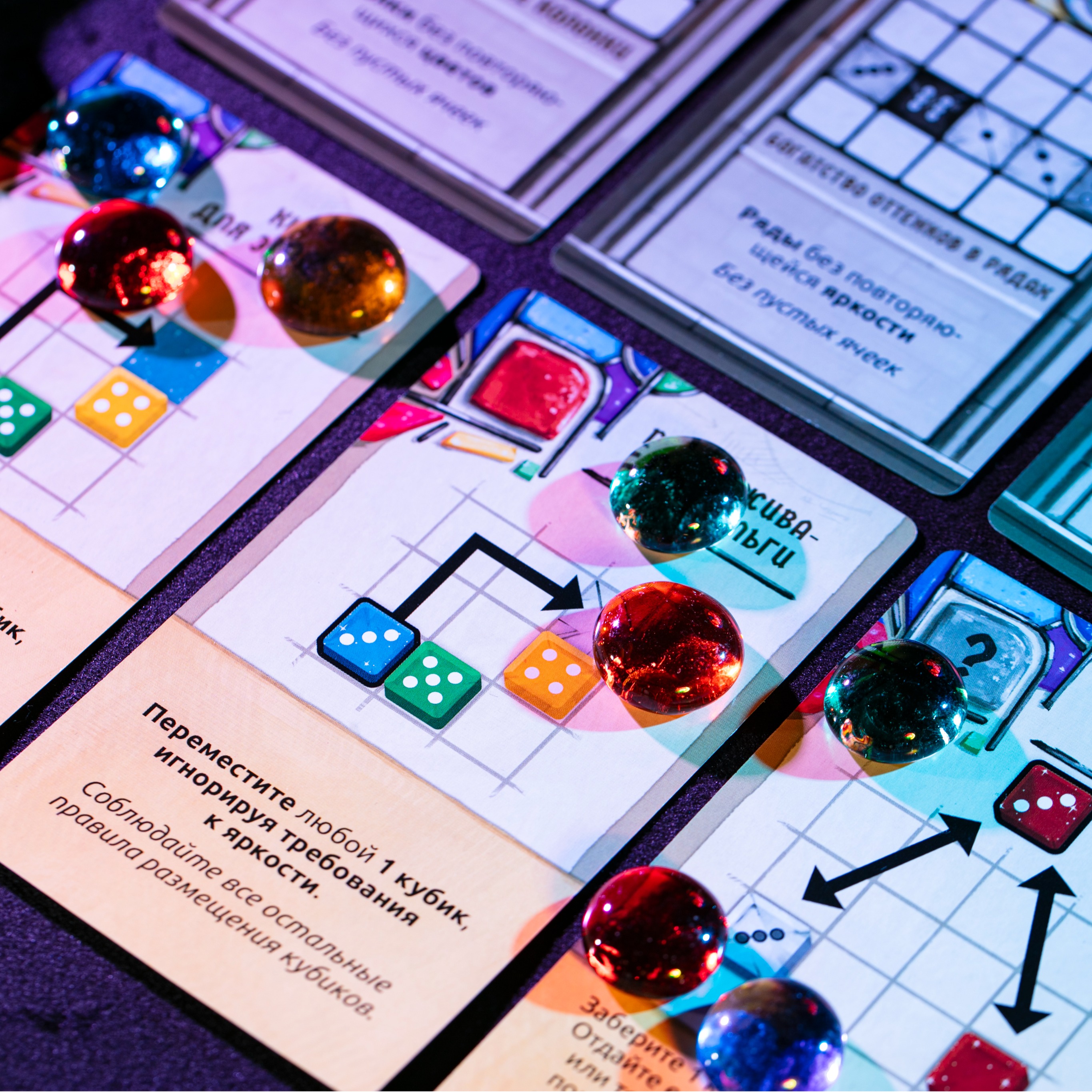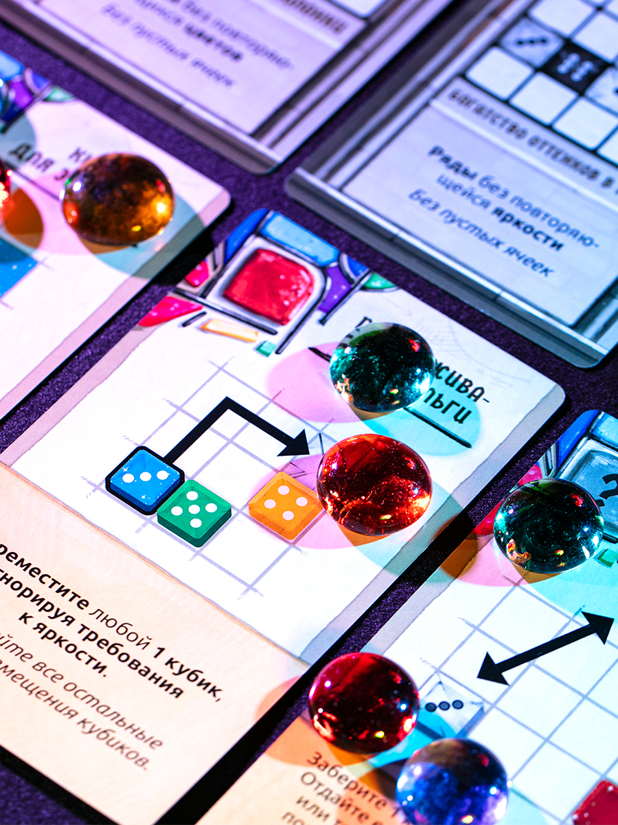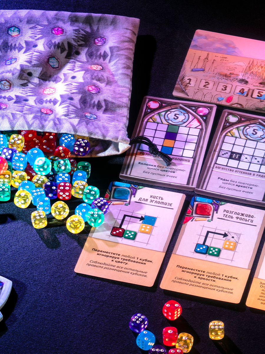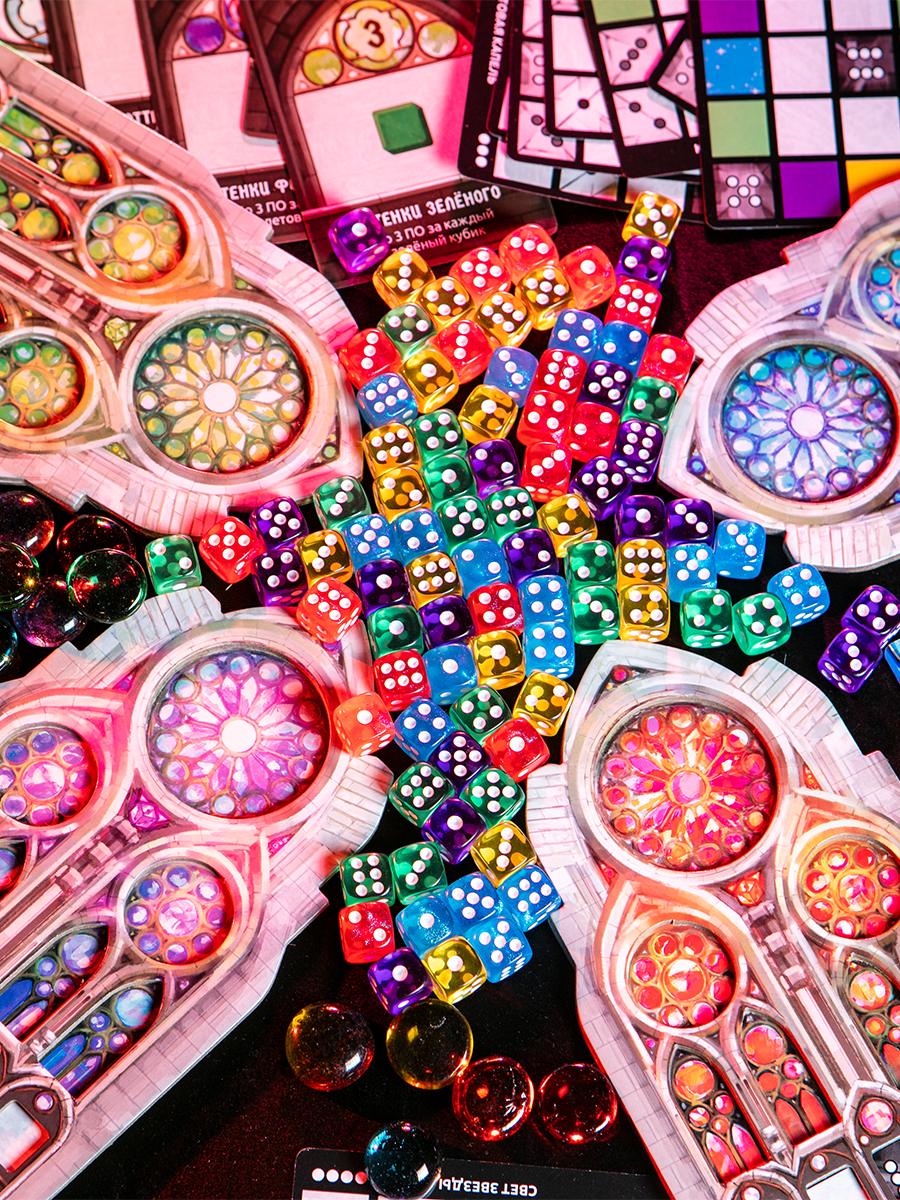 Создание витражей — процесс творческий, но вашу креативную мысль ограничат строгие правила. Ваше стекло — это кубики. Инструменты — карты действий. Схемы и эскизы — планшеты витражей. Победит самый талантливый и точный.