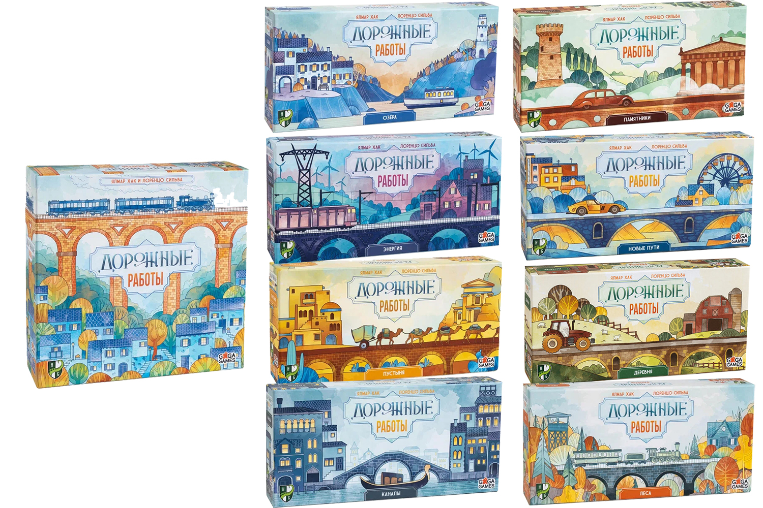 Дорожные Работы — семейная стратегия, в которой найдётся место и для медитативного созидания, и для напряжённого соревнования. Соединяйте тайлы, собирая мир по кусочкам, словно большой пазл. Отправляйтесь в захватывающее и разнообразное путешествие по всем коробочками серии и станьте лучшим дорожным работником!