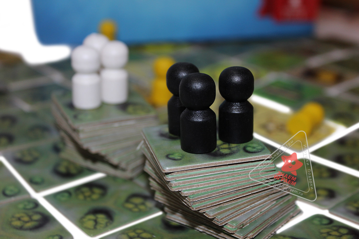 - Игровое поле - 117 квадратных клеток с разными рисунками на одной стороне и одинаковой рубашкой на другой.