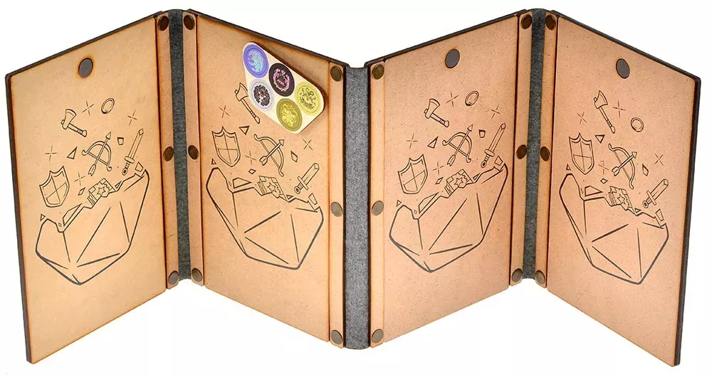Ширма мастера подземелий для настольных ролевых игр. Формата А5. Размер в разложенном виде 660x6x230 мм.