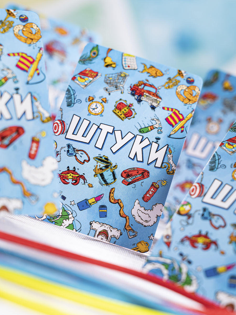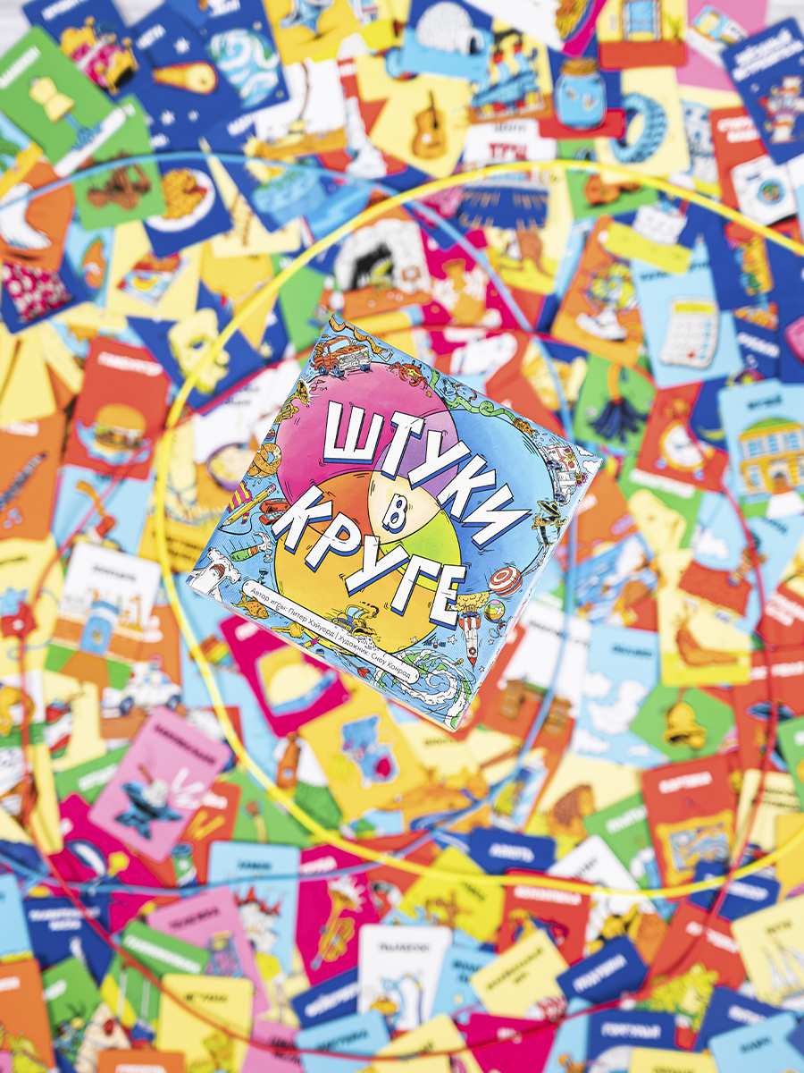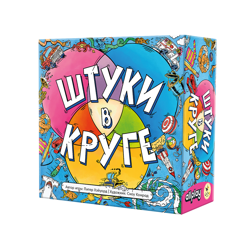 «Штуки в круге» — занимательная игра-вечеринка, в которой нужно применять дедукцию! В центре — три пересекающихся круга, к каждому из которых относится секретное правило, известное только одному игроку. Остальные игроки пытаются избавиться от своих карт, угадывая, в какие круги их помещать.