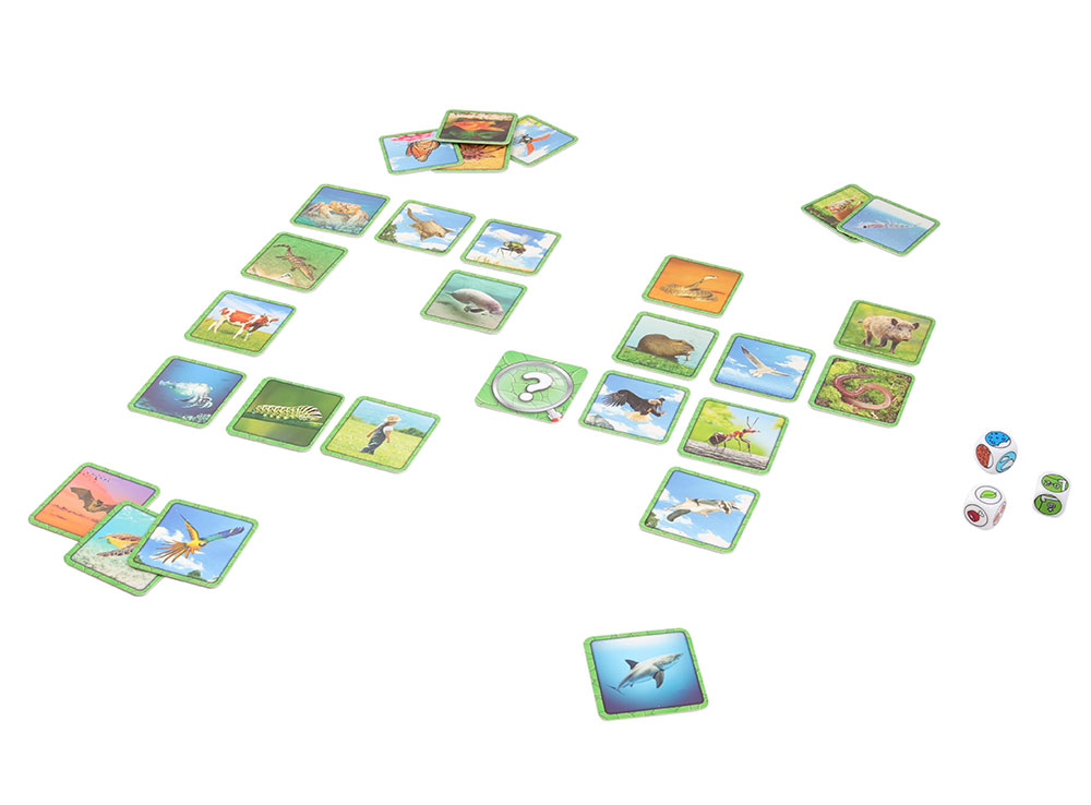Откройте глаза! Знаете ли вы всеядное летающее животное, у которого две ноги? Киньте специальные кубики и первым идентифицируйте зверя по трём соответствующим признакам: среда обитания, предпочтение в пище и количество ног. Различные варианты игры делают игру интересной для всех возрастов.