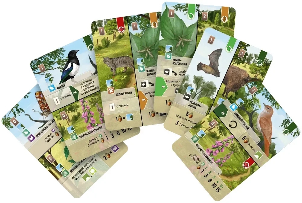 Каждый житель леса имеет свои личные предпочтения: одним нужны определённые деревья, другим – соседи или особые условия. Уникальность игры – в динамичном взаимодействии игроков через общую поляну. Это не кооперативный элемент, а тактический: оплачивая свои ходы, вы сбрасываете карты на поляну, а ваши соперники могут забрать их! Это заставляет тщательно планировать действия и предугадывать намерения других.