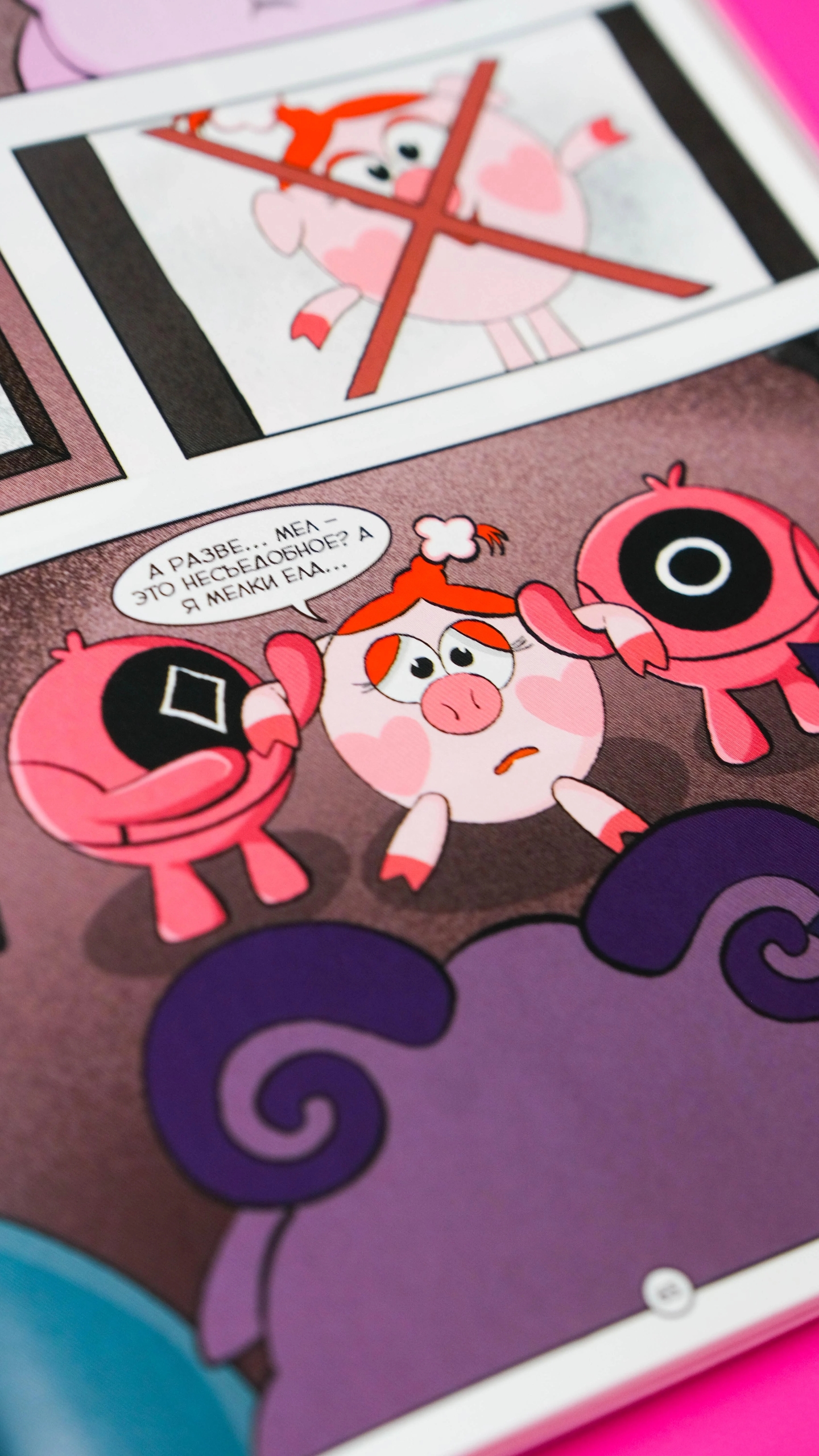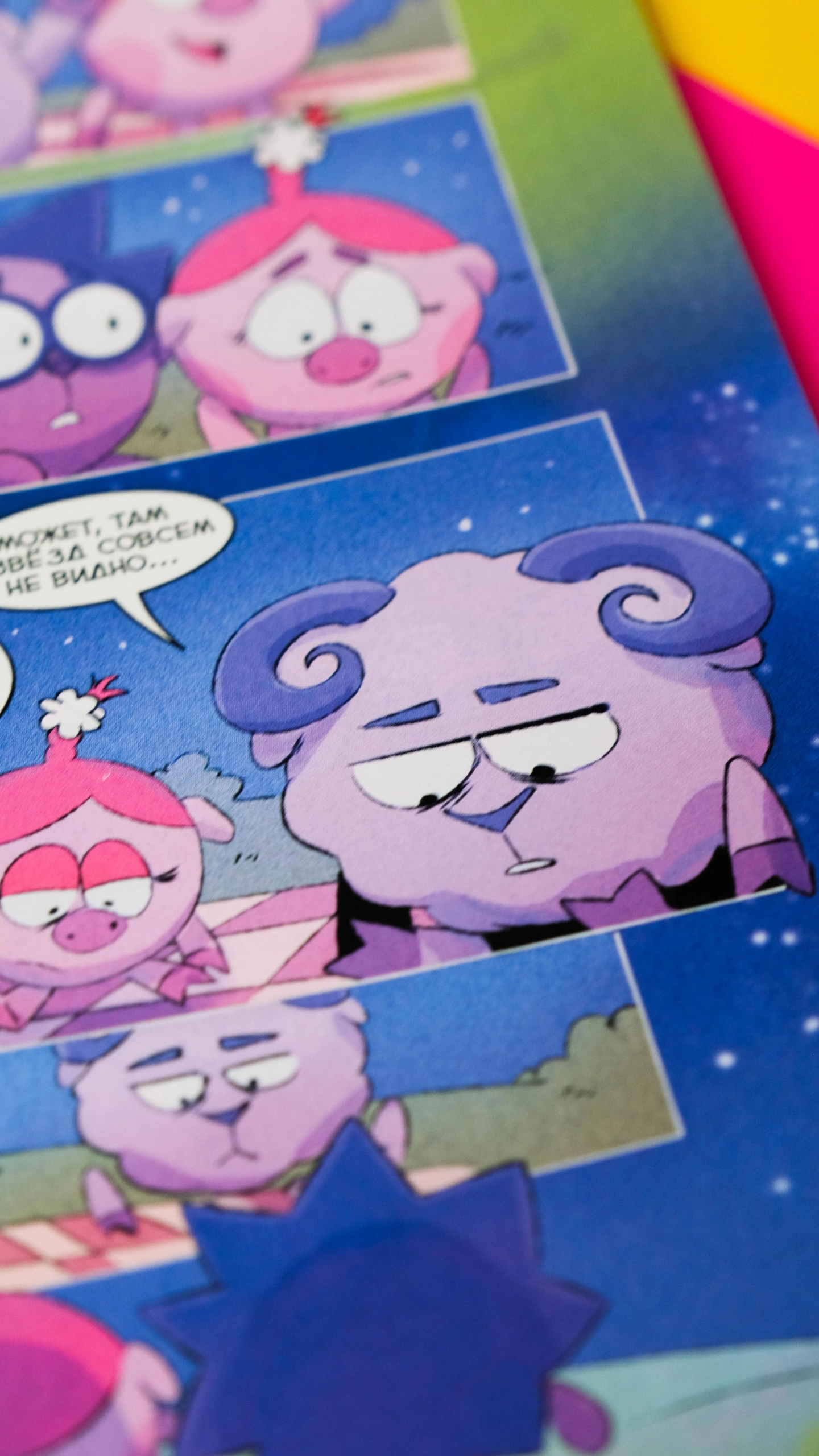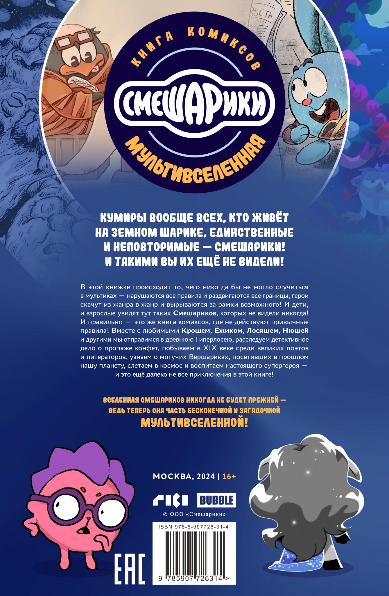 этой книжке происходит то, чего никогда бы не могло случиться в мультиках — нарушаются все правила и раздвигаются все границы, герои скачут из жанра в жанр и вырываются за рамки возможного! И дети, и взрослые увидят тут таких Смешариков, которых не видели никогда! И правильно — это же книга комиксов, где не действуют привычные правила! Вместе с любимыми Крошем, Ёжиком, Лосяшем, Нюшей и другими мы отправимся в древнюю Гиперлосею, расследуем детективное дело о пропаже конфет, побываем в XIX веке среди великих поэтов и литераторов, узнаем о могучих Вершариках, посетивших в прошлом нашу планету, слетаем в космос и воспитаем настоящего супергероя — и это ещё далеко не все приключения в этой книге!