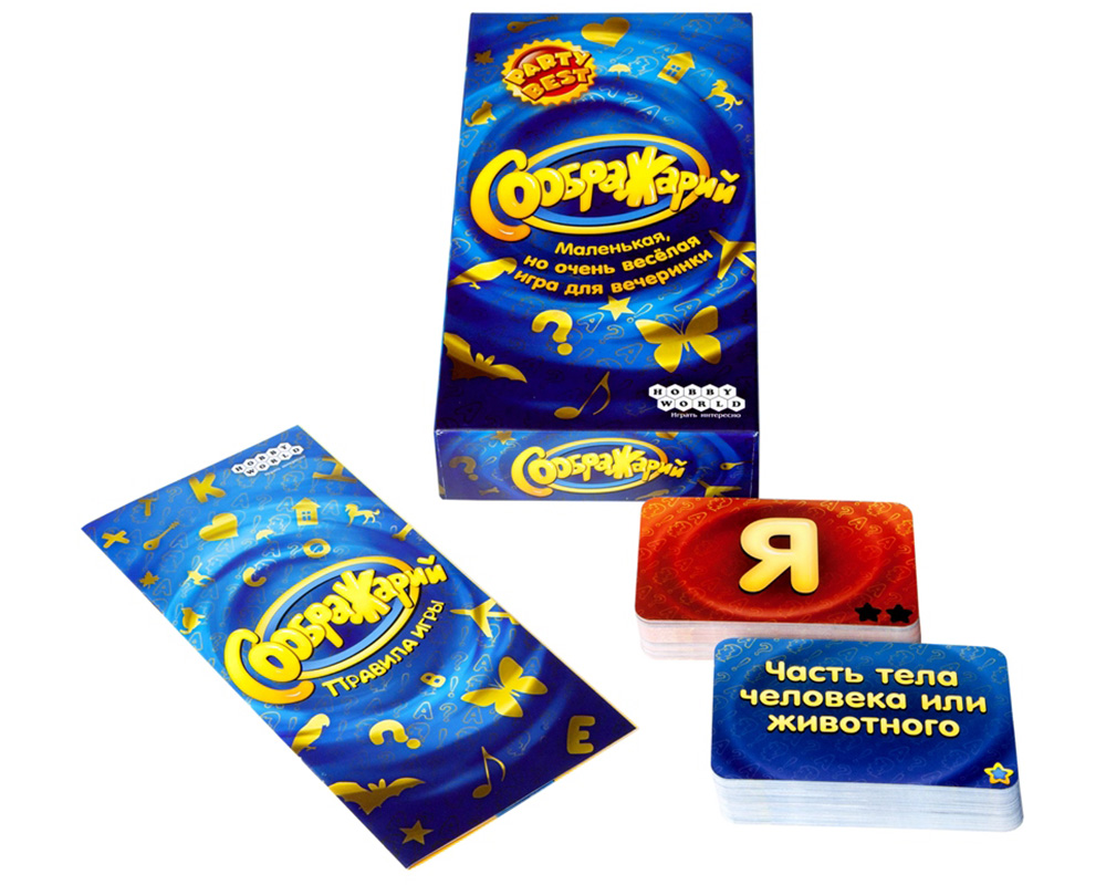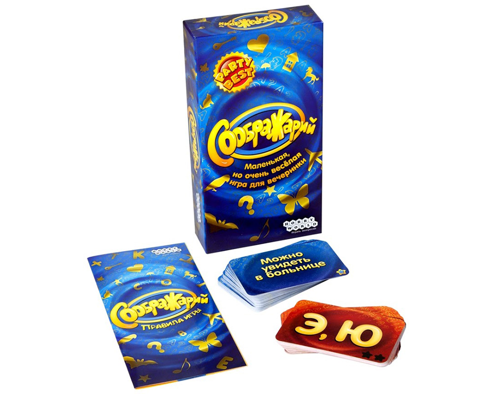 «Соображарий» — игра для вечеринок и семейных посиделок, которая одинаково понравится и детям, и взрослым. Каждый ход вы будете тянуть из колоды карты букв и категорий — а потом проявлять чудеса реакции, пытаясь первым вспомнить подходящее слово. Чтобы победить в этой игре, не нужно быть самым эрудированным — нужно просто быстрее всех соображать!