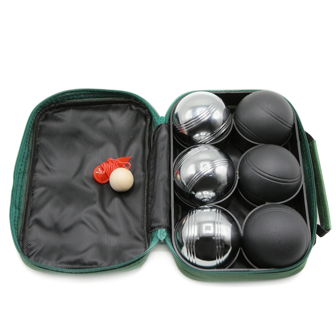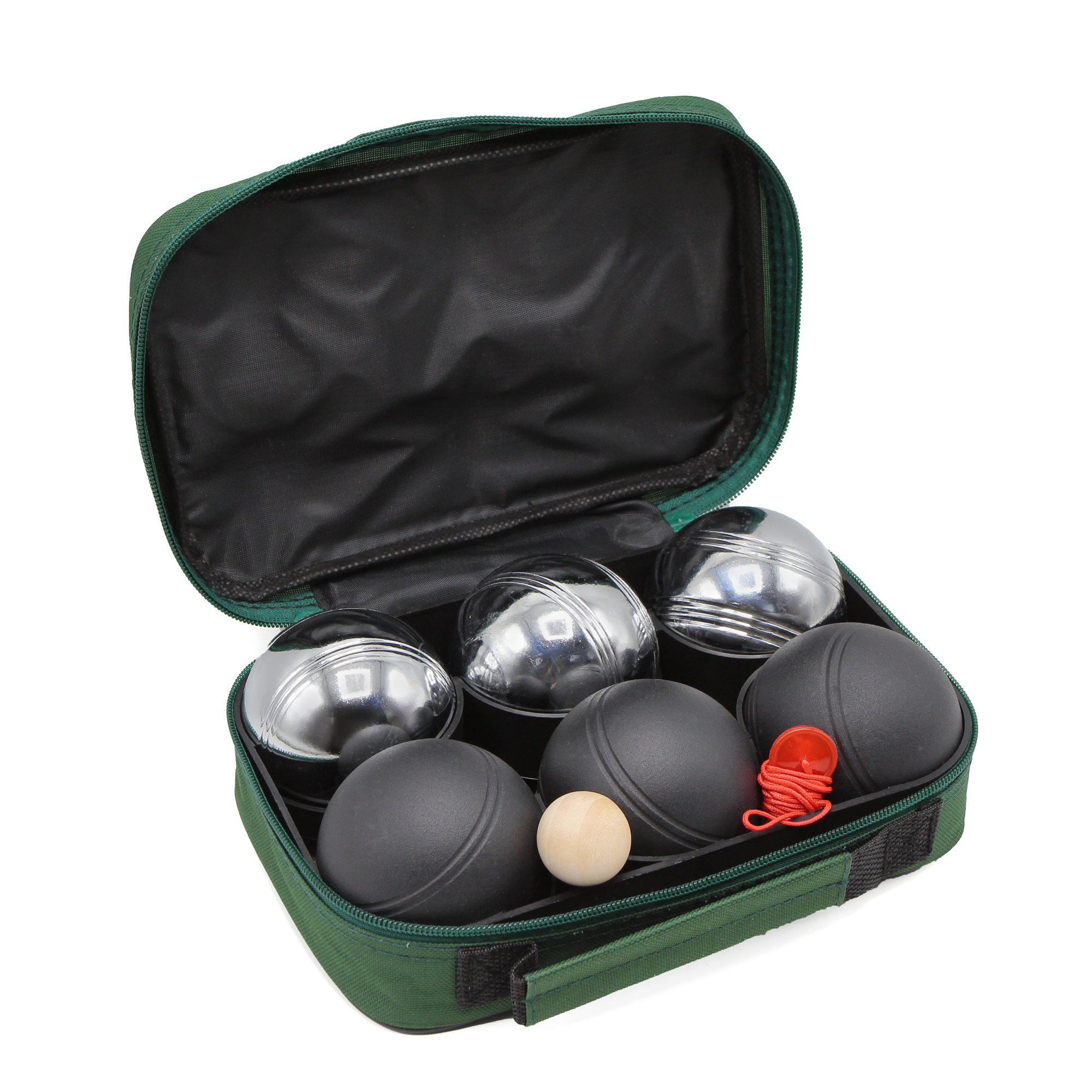 6 шаров (3 чёрного цвета, 3 серебряного) в нейлоновой сумке.