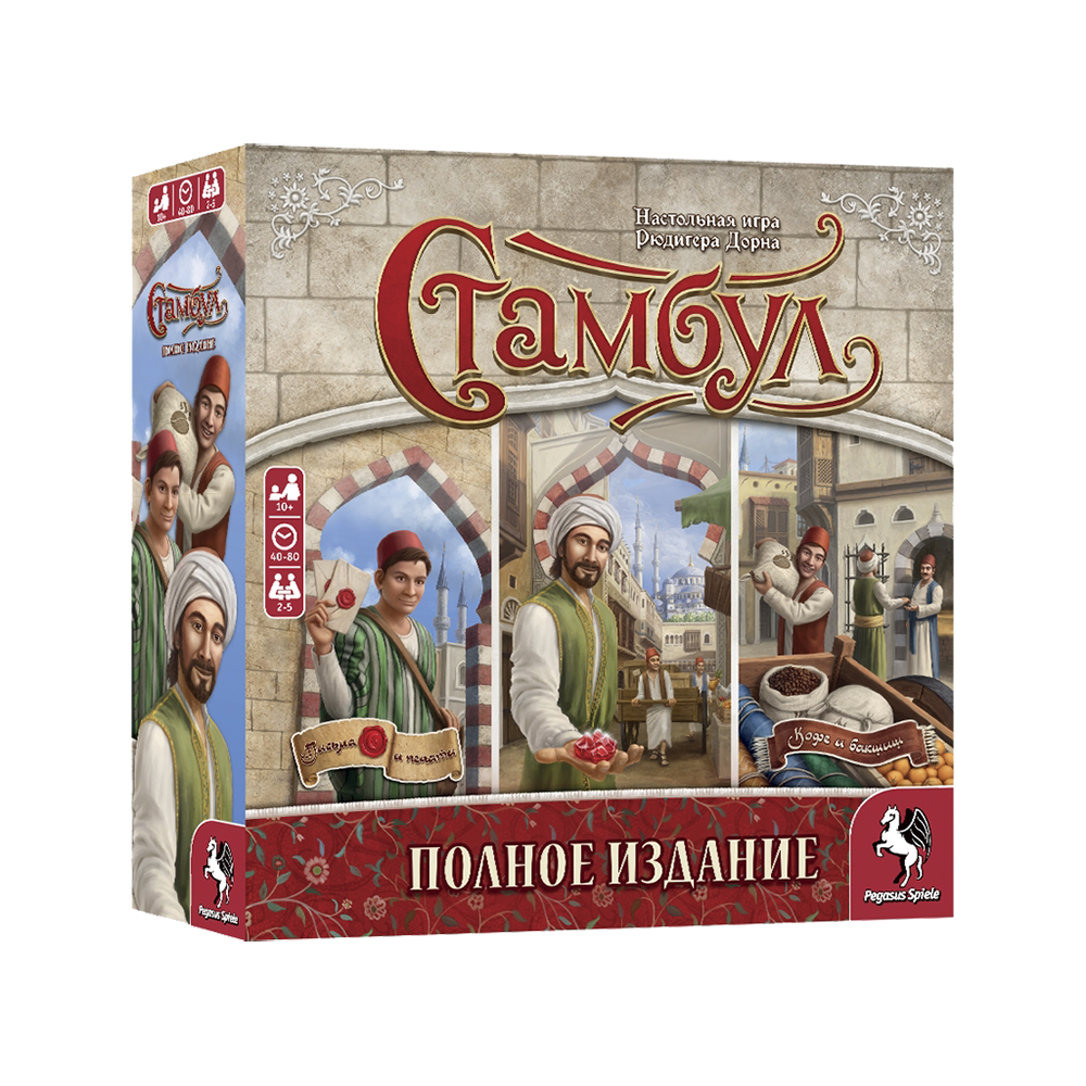 В настольной игре «Стамбул. Полное издание» вы возьмёте на себя роль торговца, который с помощниками спешит по улочкам турецкого базара. Получайте товары, торгуйте и зарабатывайте рубины. Модульное игровое поле сделает каждую партию непохожей на другую, а простые в освоении правила предусматривают десятки победных стратегий. Первый, кто соберёт достаточно рубинов, станет самым преуспевающим купцом Востока!
