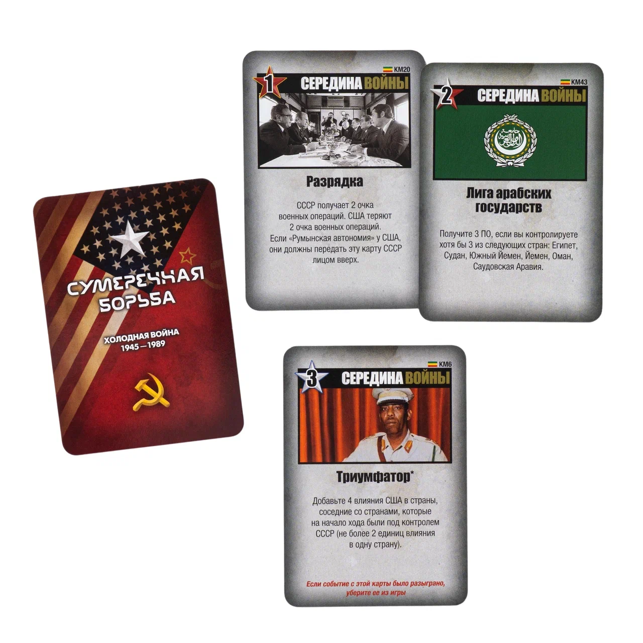 Игрок может разыграть событие, только если оно относится к его сверхдержаве или к обеим фракциям. Тогда в силу вступают описанные на карте эффекты, а сама карта либо уходит в сброс, либо удаляется из игры.