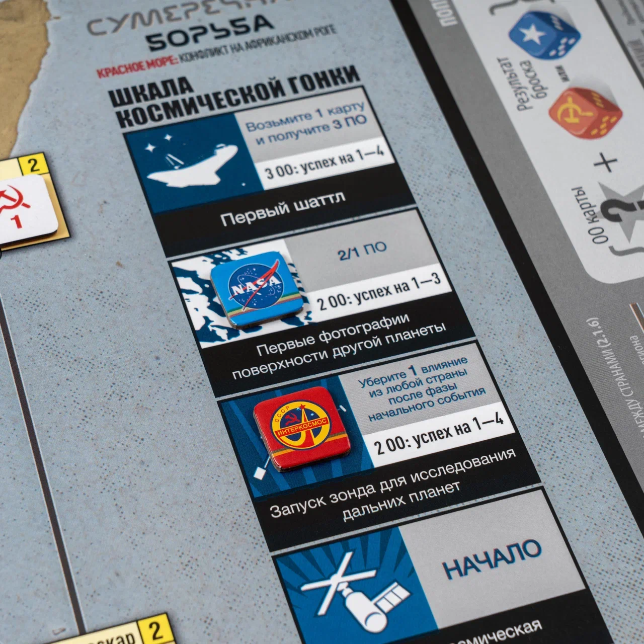 С помощью очков операций можно усиливать своё влияние в странах, снижать влияние соперника, предпринимать попытки переворотов, а также продвигаться по шкале космической гонки.
