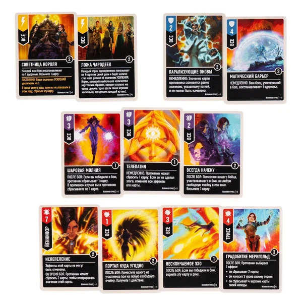 Играя за Йеннифэр, вы выбираете мощь природной магии и энергичный стиль боя. Когда Йен атакует, её карту можно усилить во время фазы «НЕМЕДЛЕННО». Сопернику чародейки придётся бросить все силы на защиту, ведь этот эффект нельзя отменить. Магия Трисс более сдержанна, но не менее смертоносна. Её карты поражают своей мощью и заставляют врага принимать ужасающие решения — самому выбирать для себя один из трёх негативных эффектов. А после розыгрыша приёма Трисс наносит 2 единицы урона бойцу в соседней ячейке. Даже союзникам опасно стоять с ней рядом!