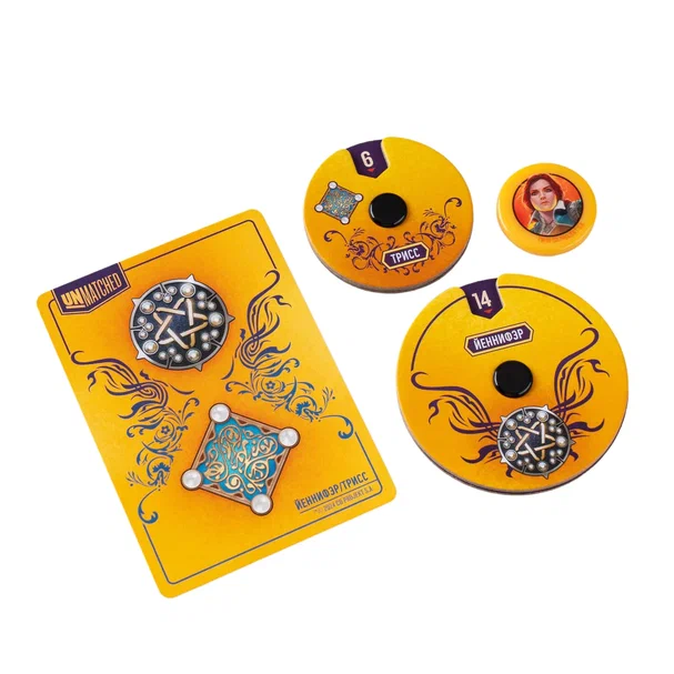 Трисс и Йеннифэр — непримиримые соперницы или всё же лучшая команда? В Unmatched эти могущественные чародейки стали единым целым, как два бойца в одном. У девушек одна колода карт на двоих, двухсторонние жетон и счётчик здоровья, но разные способности. В начале партии вам предстоит выбрать, кто из них будет героем, а кто — помощником. Их основные характеристики — 14 и 6 очков здоровья, дальний бой и перемещение на 2 ячейки. В арсенале чародеек мощные заклинания, а приём с постоянным эффектом увеличивает значения усилений на 1, вынуждая при этом атаковать на каждом ходу.