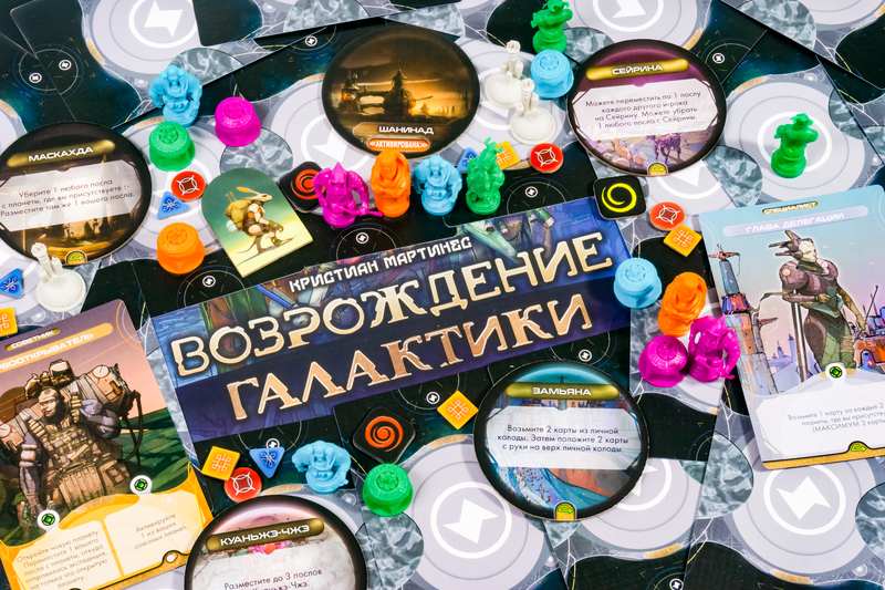«Возрождение Галактики» – это классическая стратегия на контроль территории. Внутри коробки участники найдут множество интересных карт, ярких космических элементов и персонажей. На протяжении всего «Галактического Возрождения» игрокам предстоит создавать собственную команду, пытаясь привлечь талантливых специалистов со своими уникальными способностями. С их помощью можно изучать новые планеты и звёздные системы, налаживать контакты с представителями внеземных цивилизаций и не только.