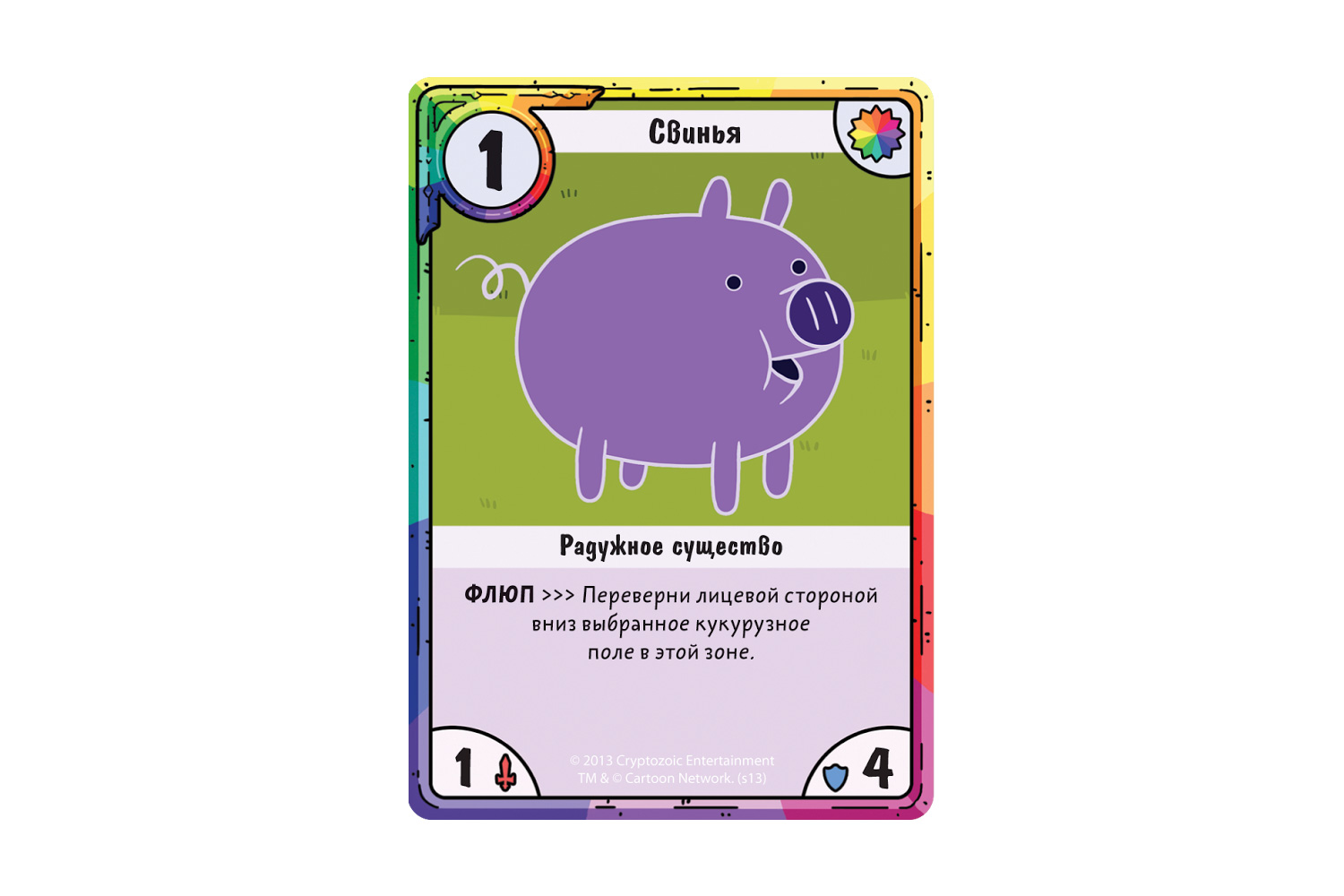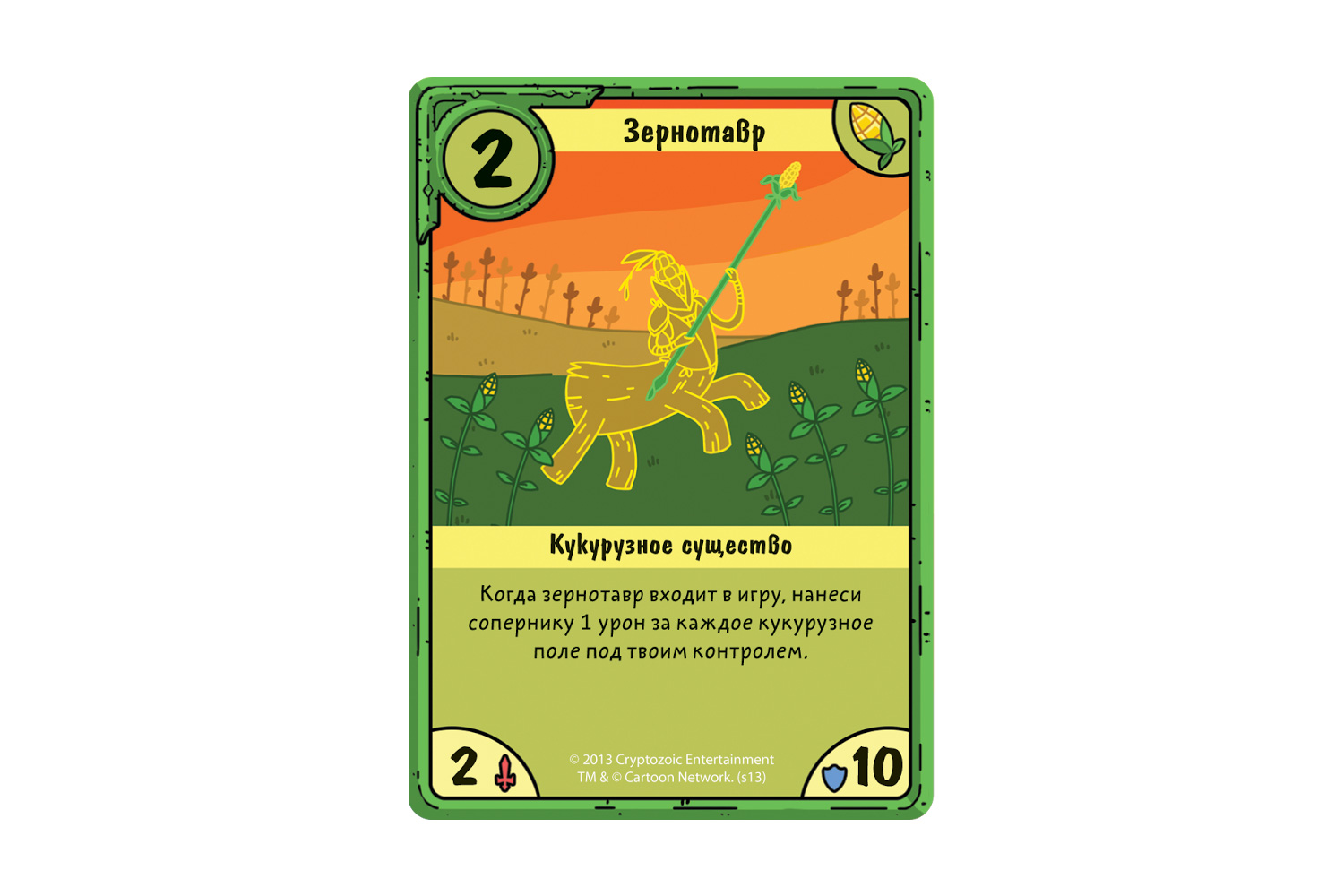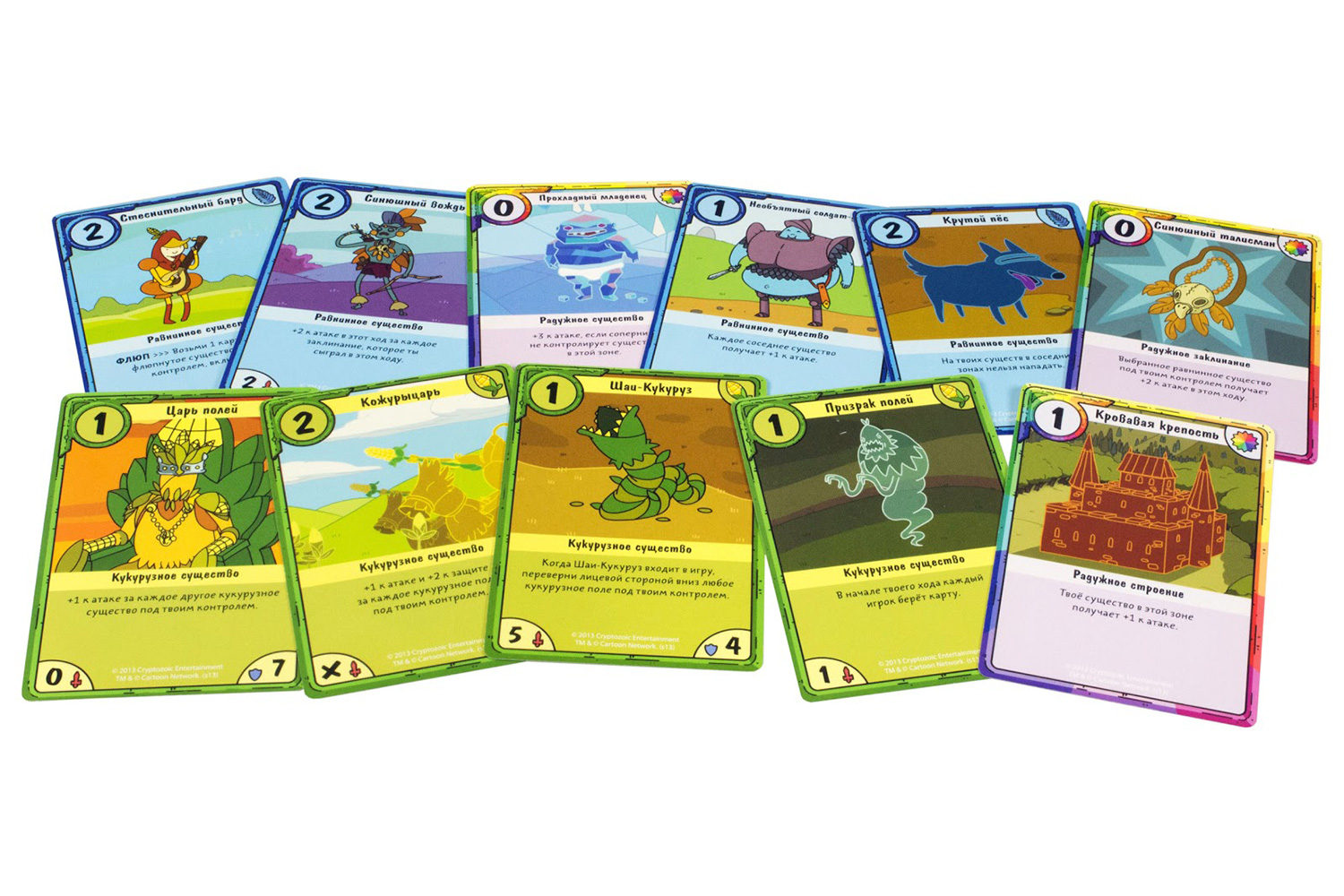 «Время приключений: Карточные войны» — самая эпичная настольная игра, какую можно найти в землях Ууу... да и не только там! Настольное сражение развернётся на синих равнинах и в кукурузных полях. Обрушь церебральный шторм на легионы початочков, столкни на поле боя велорыцарей и зернотавров, а потом отправь свинью обглодать кукурузные стебли. Сразись со своим другом, как Финн и Джейк, и выясни, кто из вас круче!