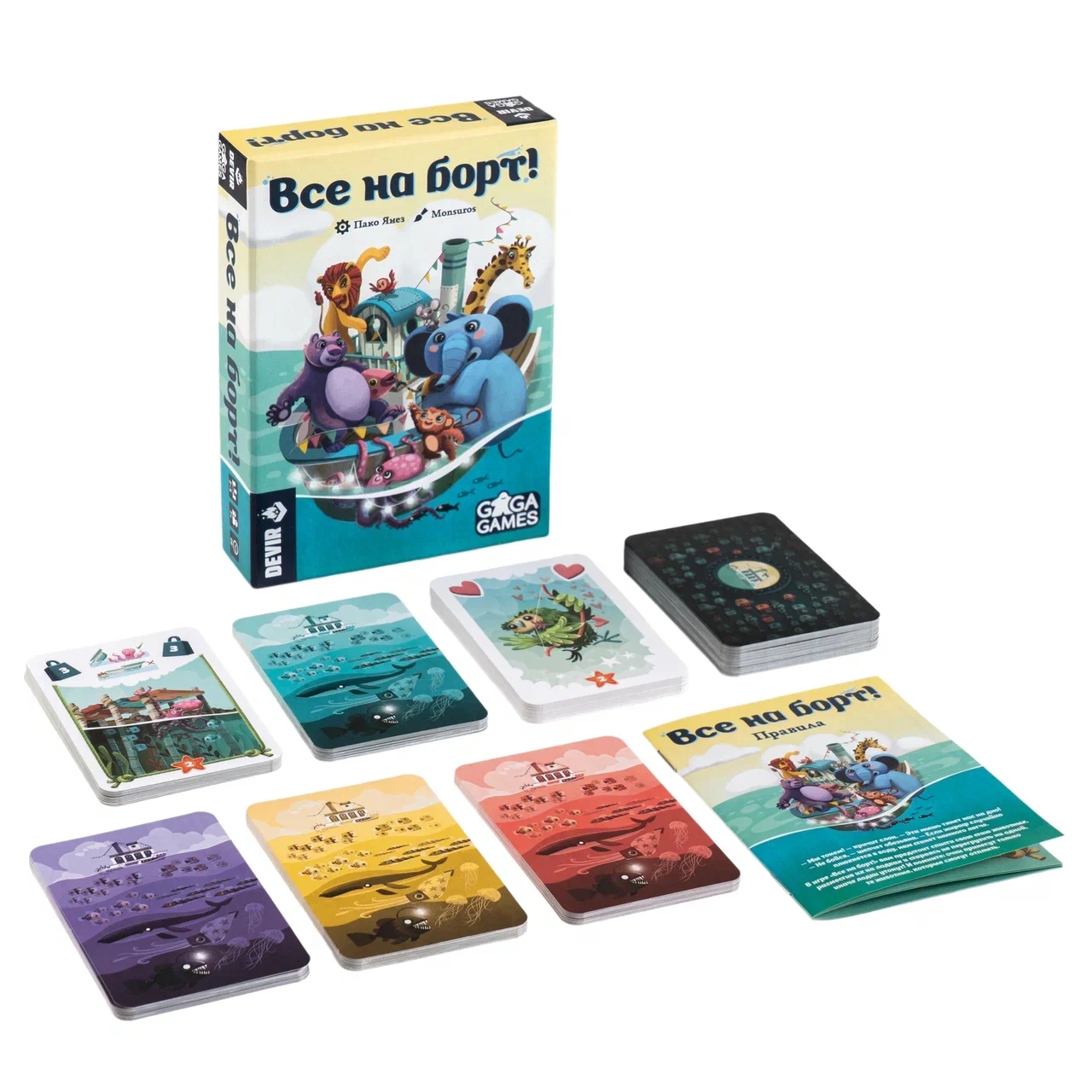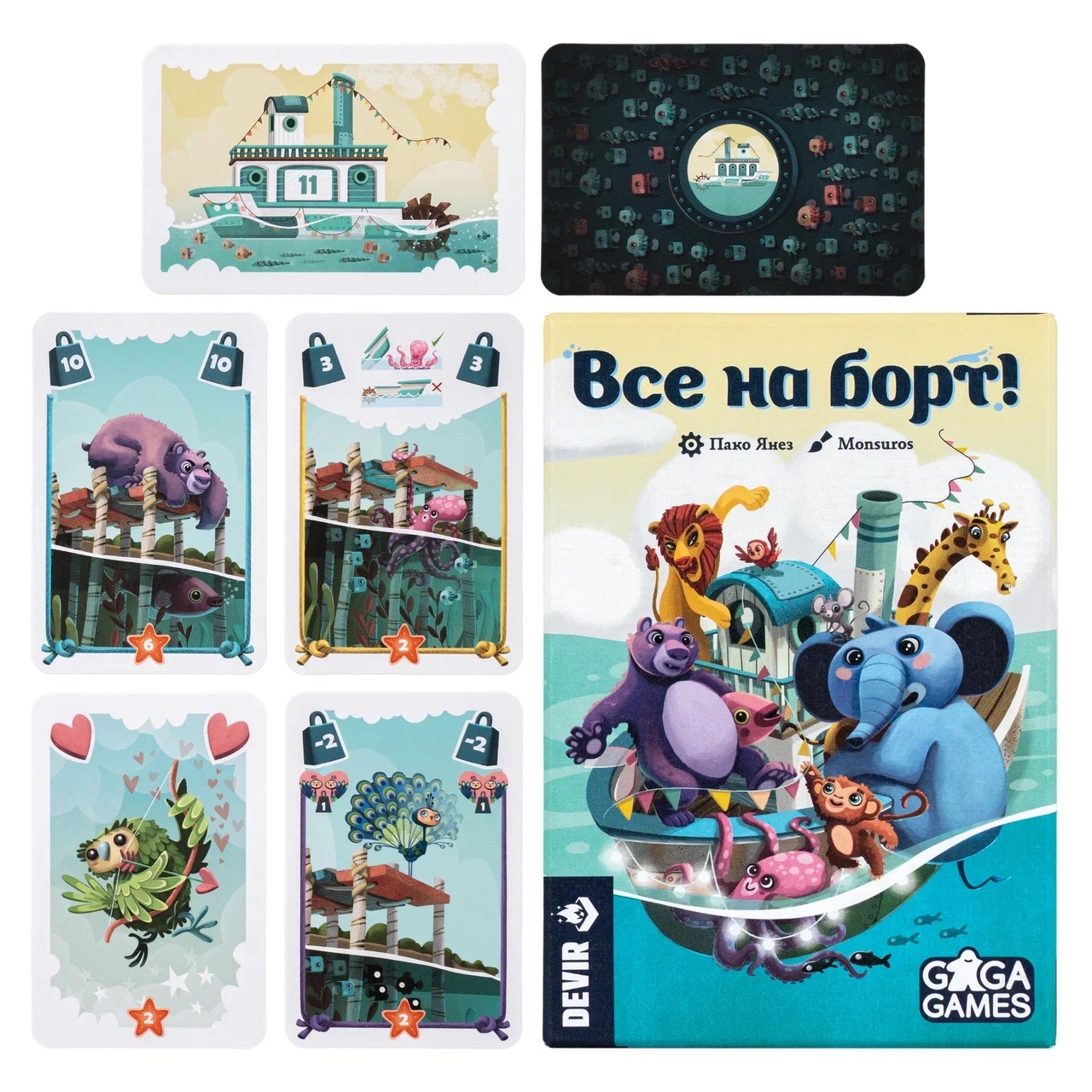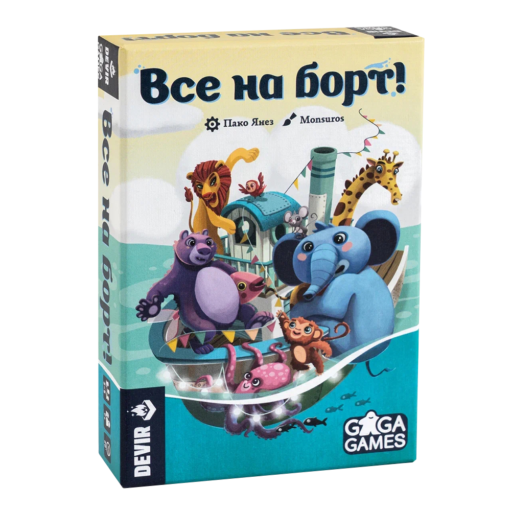 Все на Борт! — быстрая и простая карточная игра, в которой нашлось место и для гениальных расчётов, и для шумного веселья. А вот мест в лодках хватит не всем! Спасайте свой разношёрстный зверинец и не давайте соперникам уплыть без вас.