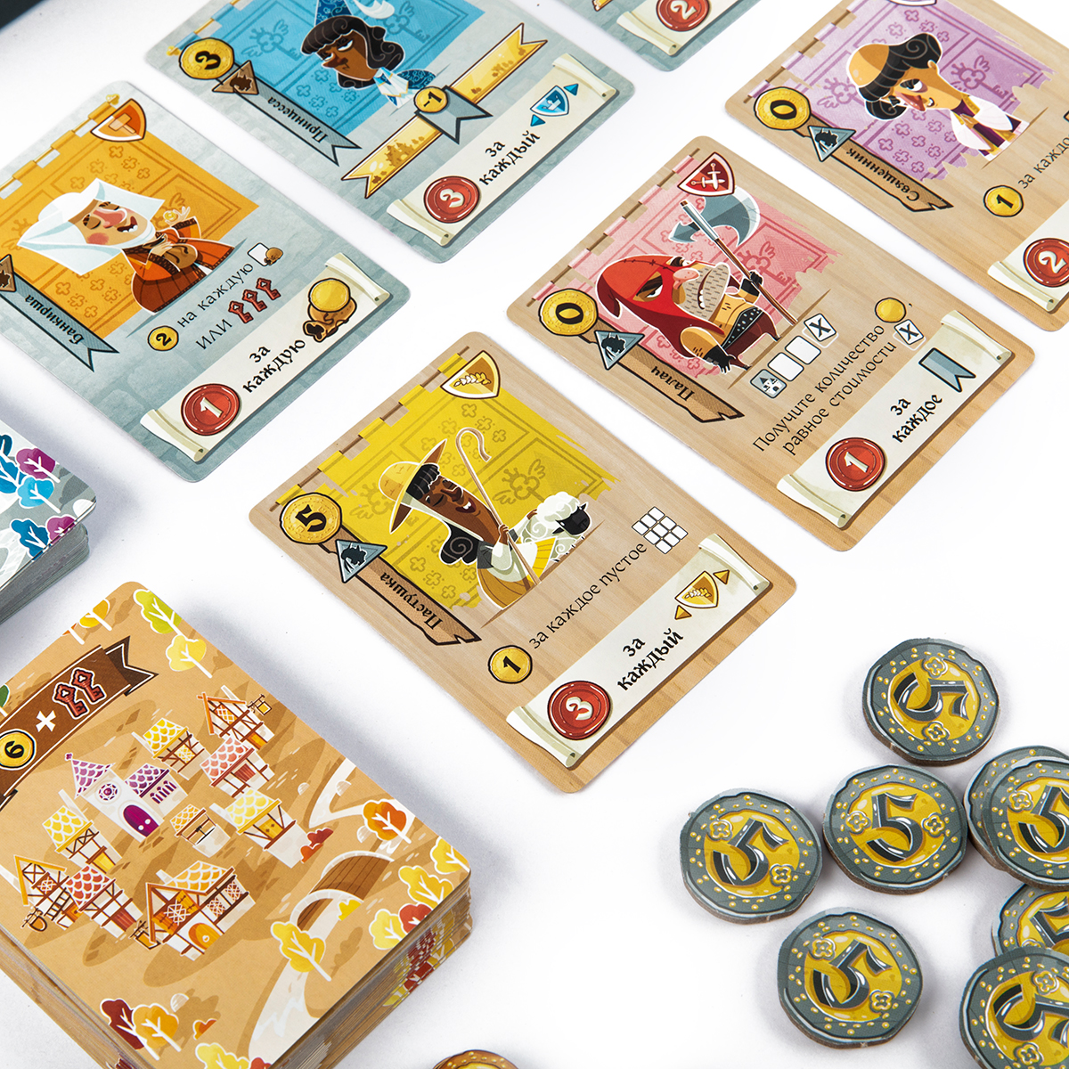 Все персонажи в игре разделены на две области: замок и деревня — деревенские жители обычно дешевле (или даже бесплатны), а вот, чтобы поселить в своём королевстве обитателей замка, придётся раскошелиться. Каждый персонаж обладает особыми эффектами, которые могут быть очень полезными в течение игры. Но помимо этого, каждый ваш подданный принесёт вам победные очки в конце игры согласно условиям на его карте, поэтому важно выбрать стратегию и придерживаться её, если, конечно, вы хотите выиграть.