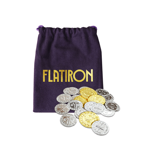 Металлические монеты для игры Флэтайрон в тканевом брендированном мешочке.