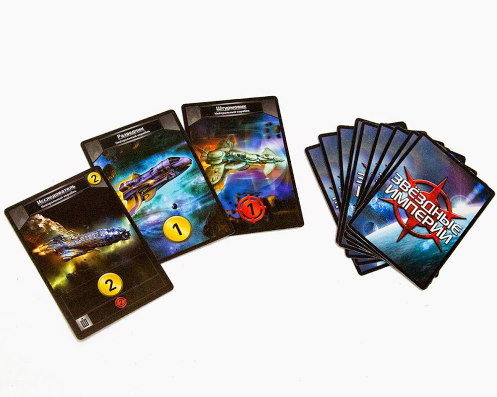 «Звёздные империи» – отличная тактическая колодостроительная настольная игра. Развивайте свой космический флот, стройте базы и оборонительные системы, аванпосты, громите противников, совершая налёты и диверсии. Партия начинается с одинаковым набором карт у игроков, а как вы будете развиваться – зависит от вашей стратегии.