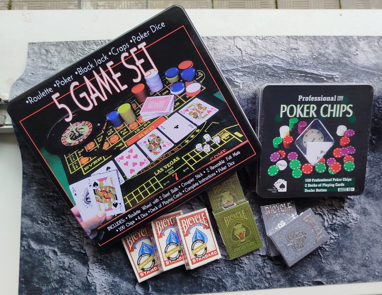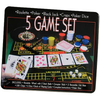 Набор из 5 игр: рулетка, покер, блэк-джек, крэпс, покер на костях (в жестяной коробке).